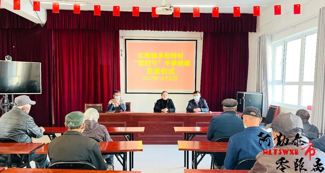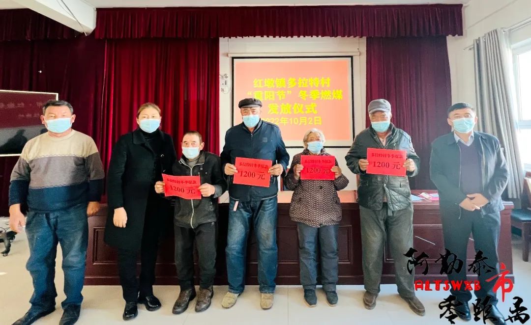 阿勒泰新闻网讯(通讯员 吾兰·哈地肯)10月2日,阿勒泰地委统战部驻红墩镇多拉特村“访惠聚”工作队举行“重阳节”冬季燃煤发放仪式,为村里17名老年人发放价值2万余元的34吨煤,解决他们冬季取暖所需的燃煤,让广大群众切实感受党和政府的关怀。