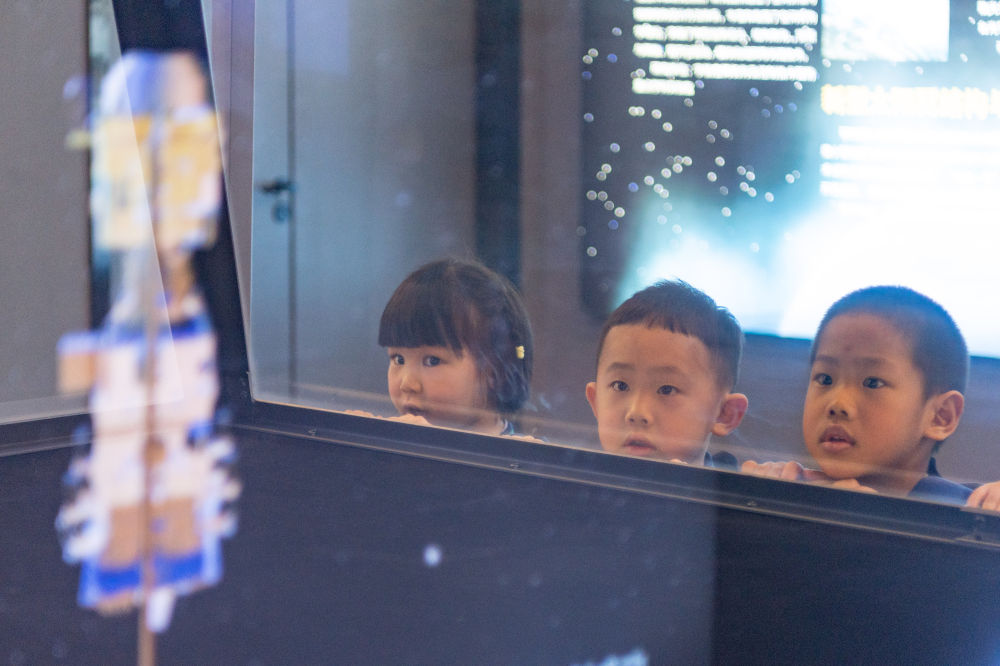 2024年4月24日,小朋友在哈尔滨工业大学航天馆内参观。航天馆是哈尔滨工业大学重要的教学基地,也是向社会公众开展航天国防教育、弘扬航天精神的重要场所,被授予首批全国科普教育基地、首批国家航天局航天科普教育基地、全国中小学生研学实践教育基地等。