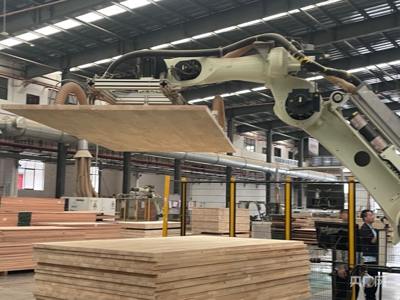 从木材分选到垛料、排版,全流程智能化;生产细节一屏可视,以销定产、共享产能……走进共享智能备料中心车间,只见生产线上机械手敏捷转身,轻巧抓取,接力完成流水化作业;智能AGV机器人在地面上穿梭往复,精准行进至目标区域;大屏幕上,生产数据实时滚动,各环节状态一目了然。“通用规格的家具配件,企业可以直接下单拿货,不同规格、尺寸,通过‘个性化’订制完成,这样一来,就能节约企业在前端备料环节的投入。”共享智能备料中心负责人刘庭告诉记者。