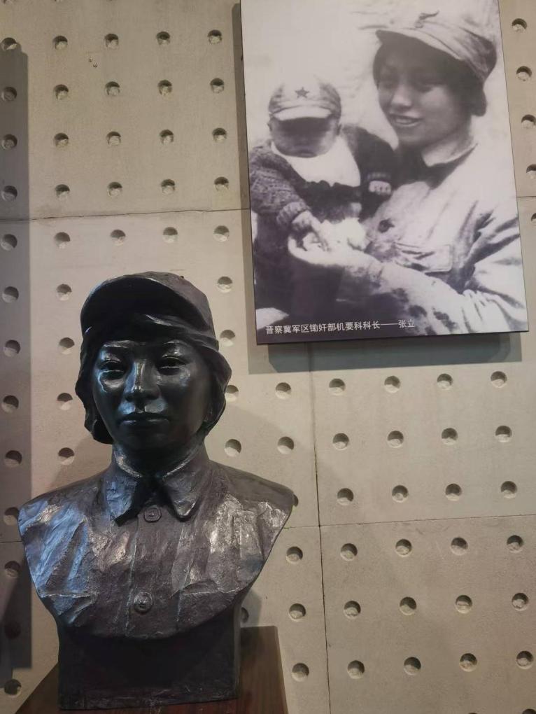 这是晋察冀边区革命纪念馆展示的张立图片和雕像。新华社记者 何莉 摄