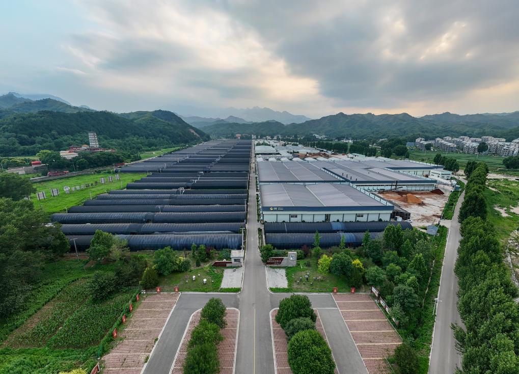 这是7月4日拍摄的阜平县天生桥镇食用菌产业核心园区(无人机照片)。新华社记者 李鑫 摄