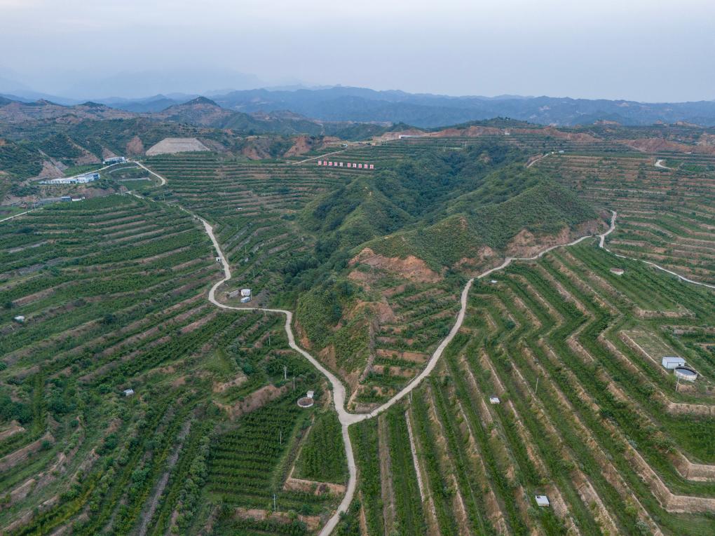 这是7月4日拍摄的阜平县高效林果产业示范园区(无人机照片)。新华社记者 李鑫 摄