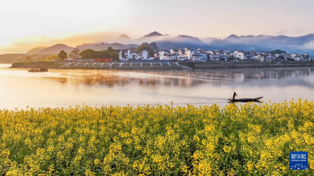 安徽省黄山市歙县新安江畔的油菜花竞相绽放(2025年3月20日摄)。新华社发(郑宏摄)