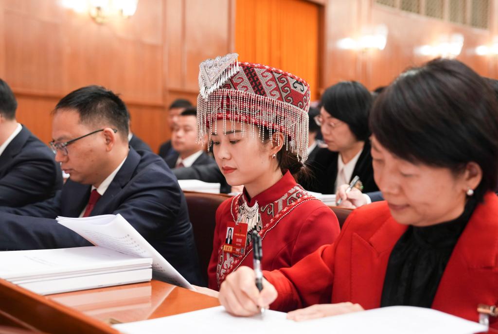 3月5日,全国人大代表金瑞瑞出席十四届全国人大四次会议开幕会。新华社记者 邢广利 摄