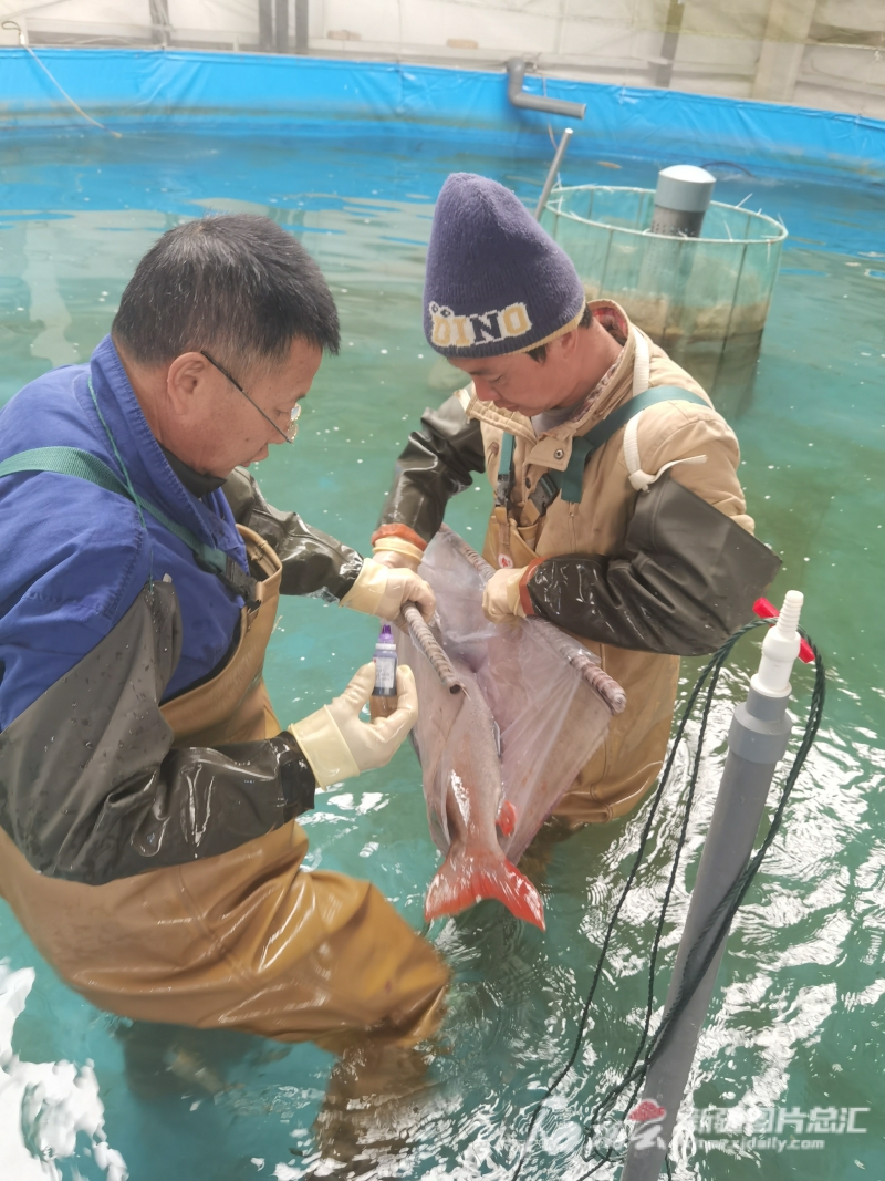 2022年“大国农匠”全国农民技能大赛获奖者——布尔津县窝依莫克镇克孜勒喀巴克村潘国强(左)正在进行额河特有鱼类人工繁殖生产工作。潘国强供图