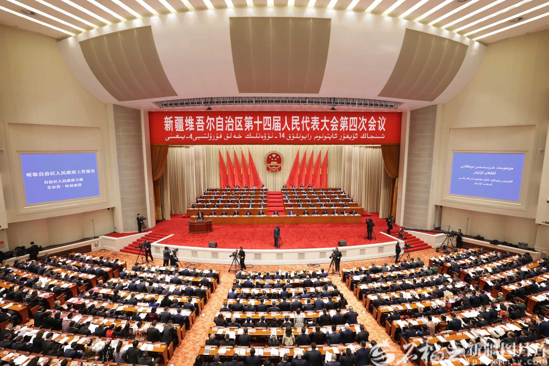 1月27日,自治区十四届人大四次会议在新疆人民会堂开幕。图为会议现场。天山网-新疆日报记者 汤永摄