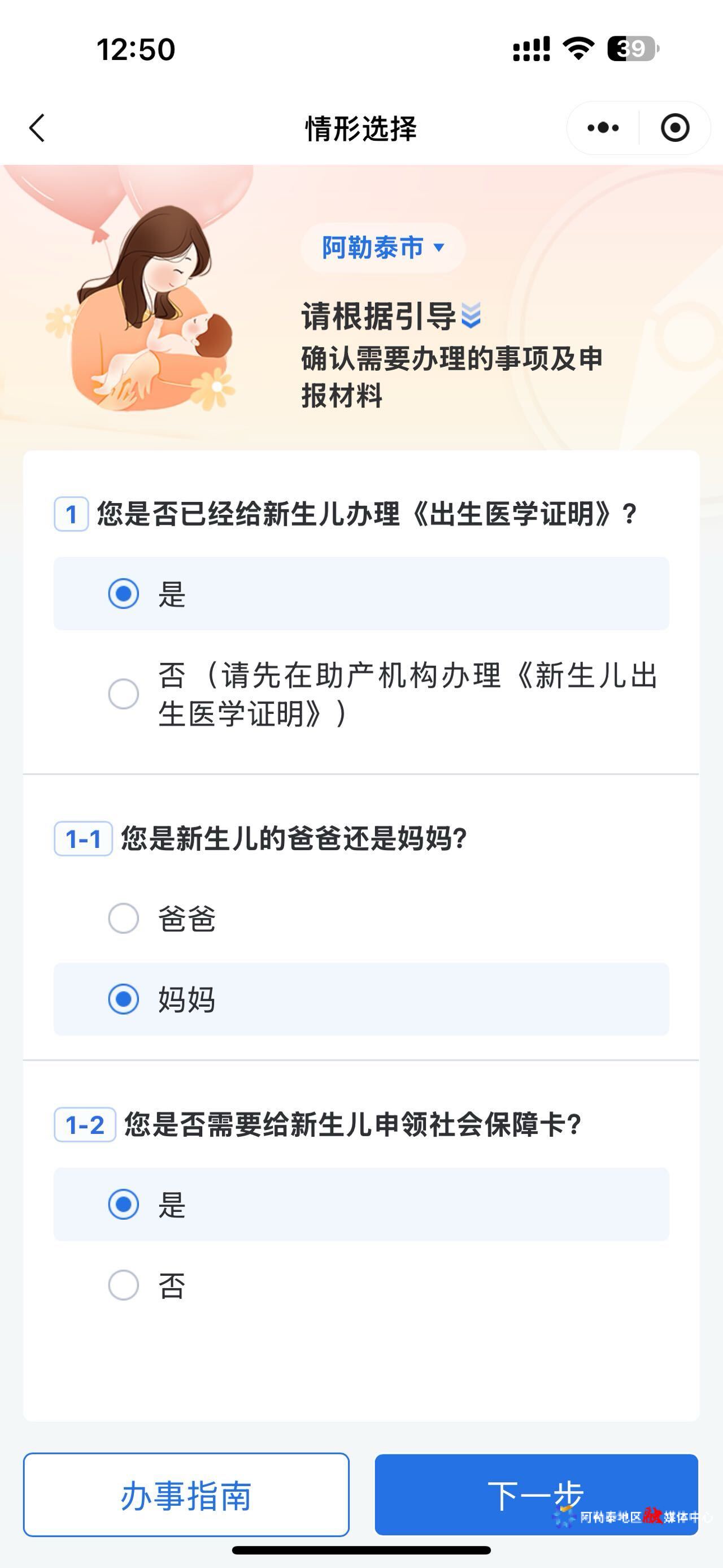 “下一步,我们将加强指导、宣传和推广高效办成新生儿出生‘一件事’,为新生儿家长提供更多便利。”阿勒泰地区卫生健康委员会一级主任科员宫晓光说。