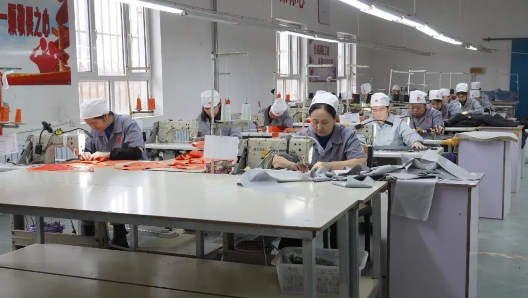 在哈巴河县雅居床服有限责任公司平缝车间里,机器轰鸣,生产工人正在满负荷进行生产,加紧制作新一批的订单服装。