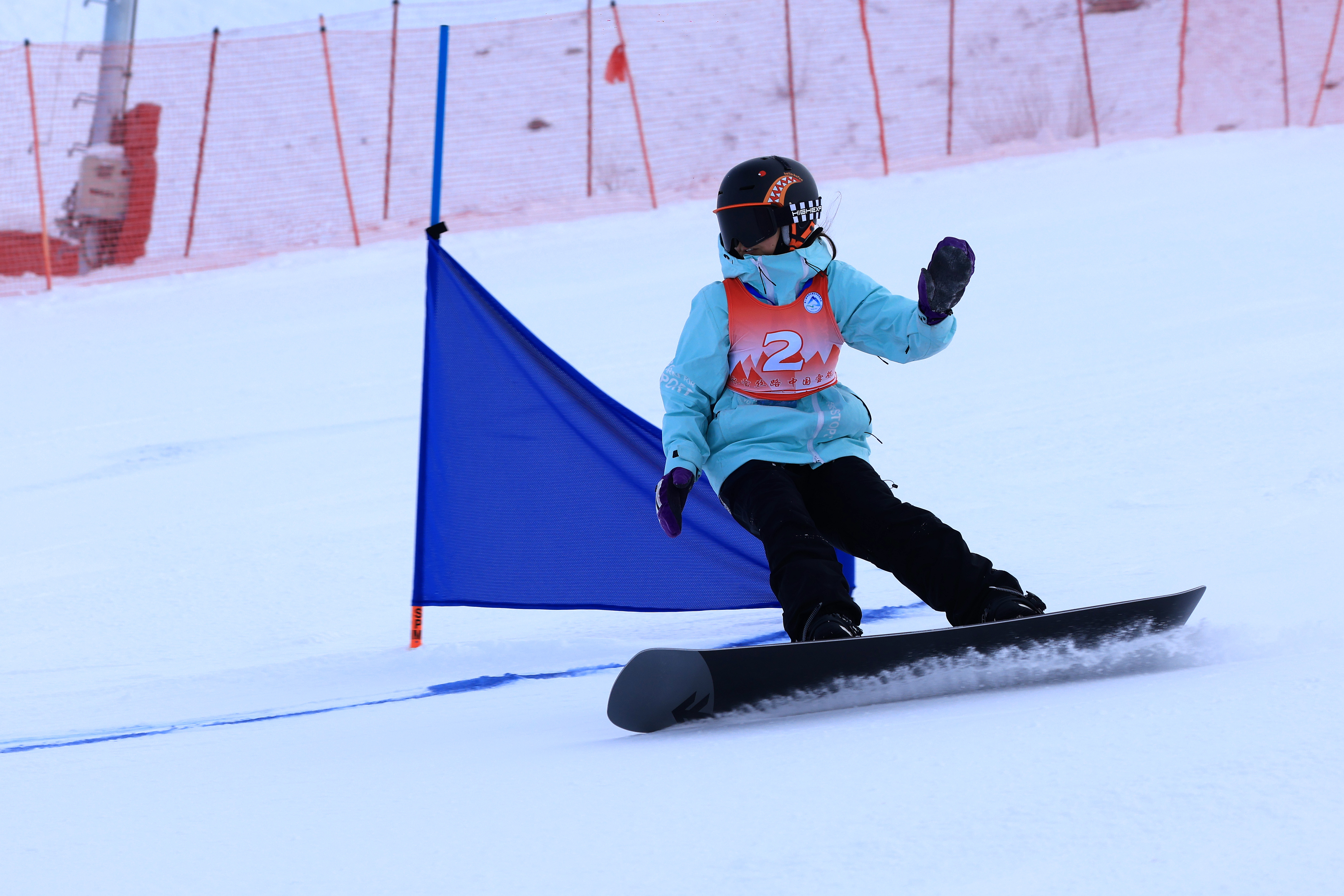 当日,运动员们身着五彩斑斓的滑雪服,从雪道出发区飞驰而下,在高速的滑行中穿越一个个旗门。