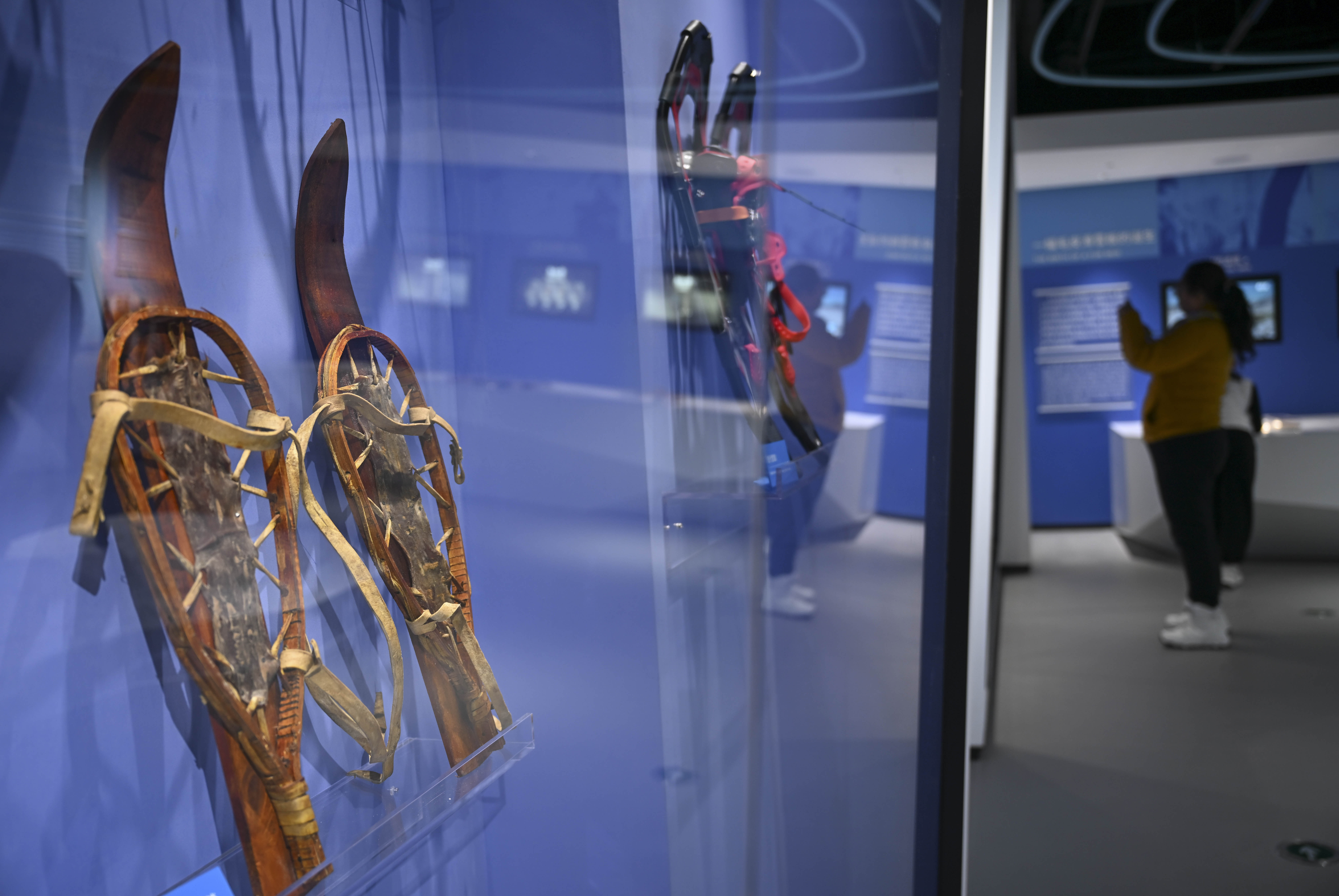 1月24日,游客在位于将军山国际滑雪度假区的阿勒泰人类滑雪起源地博物馆参观。 新华社记者 胡虎虎 摄