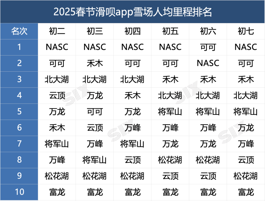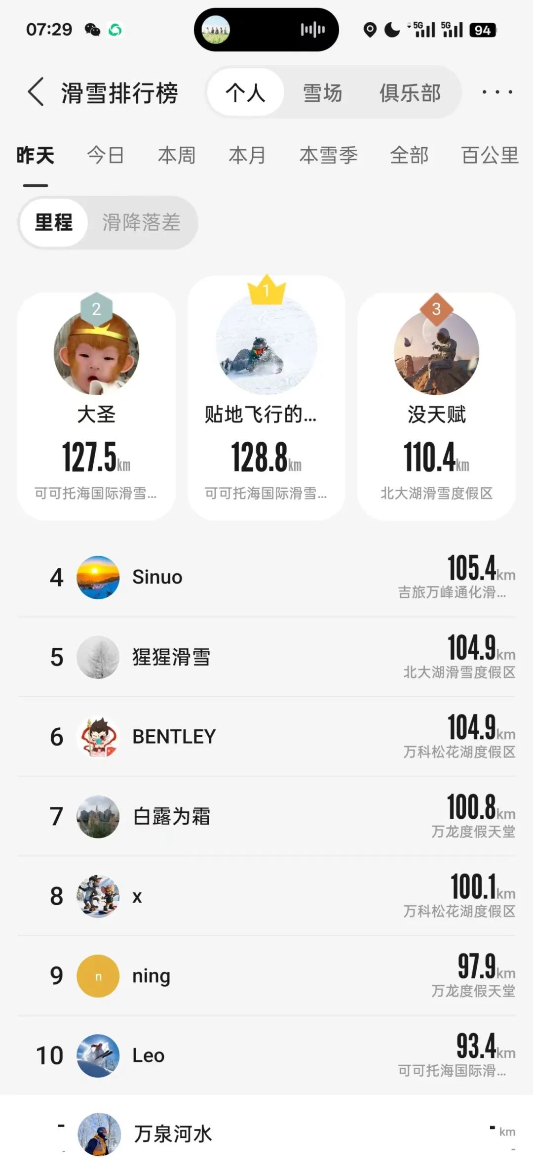 2025春节滑呗单日里程top8。图片由滑呗用户余万全 66ski提供。