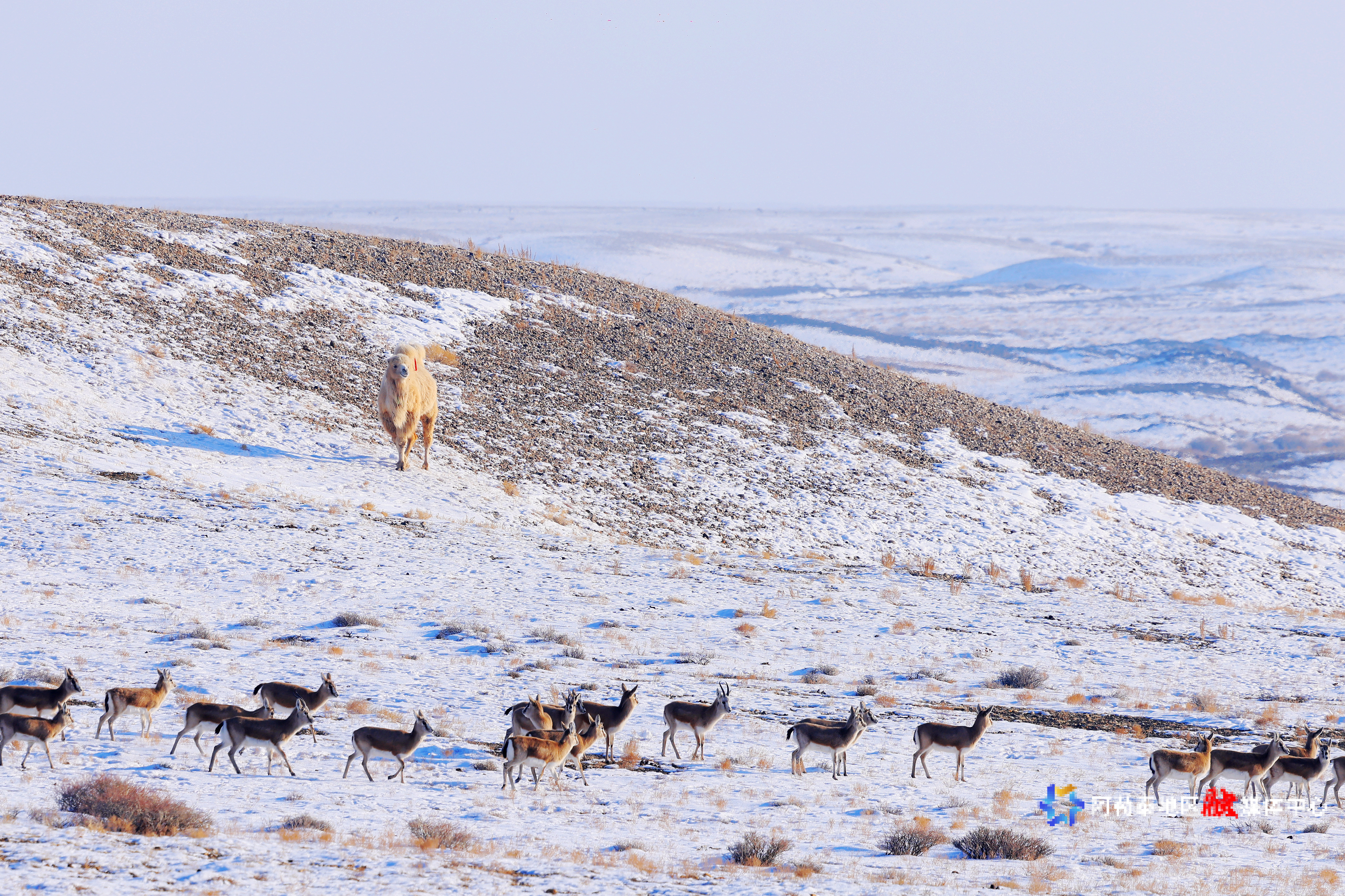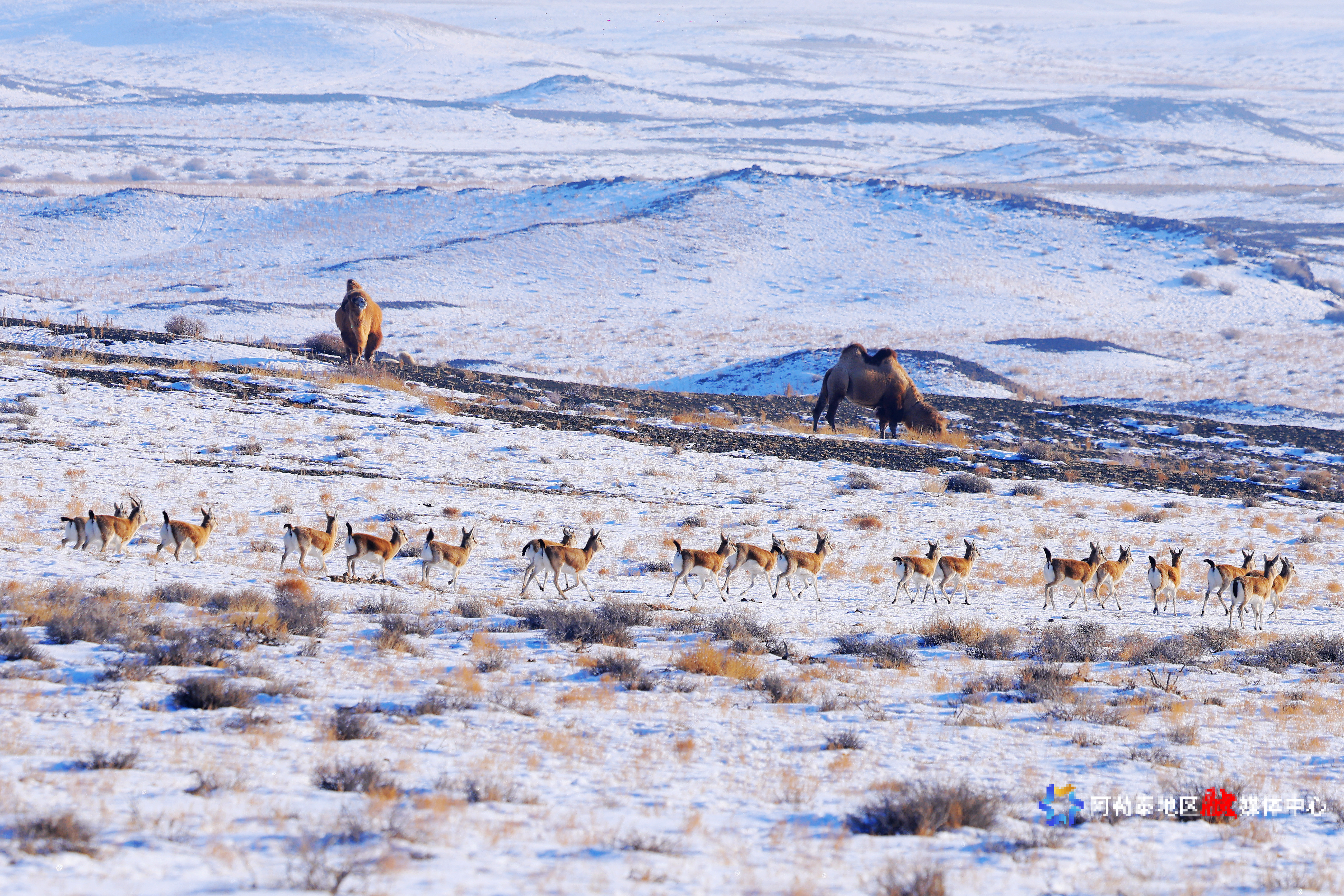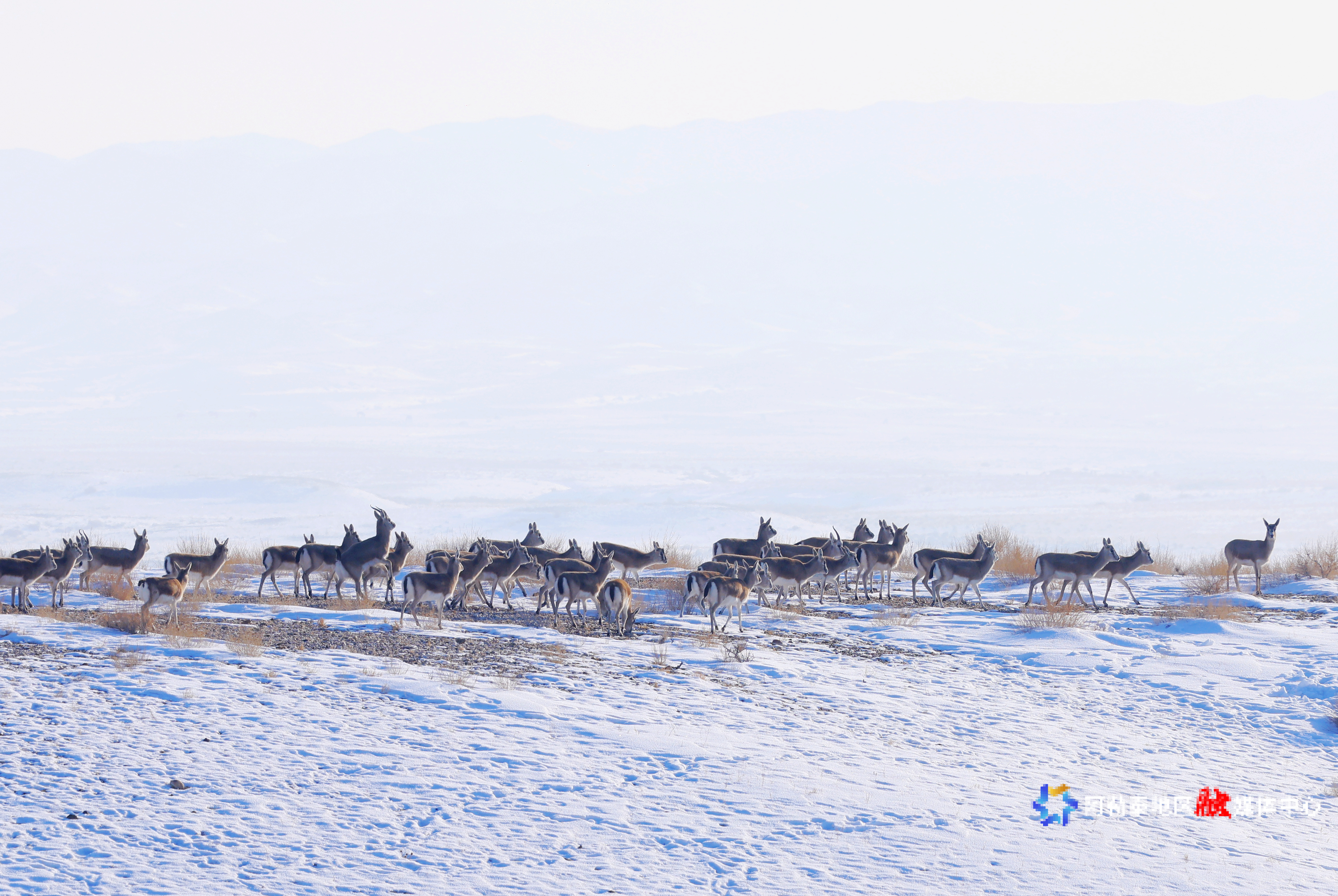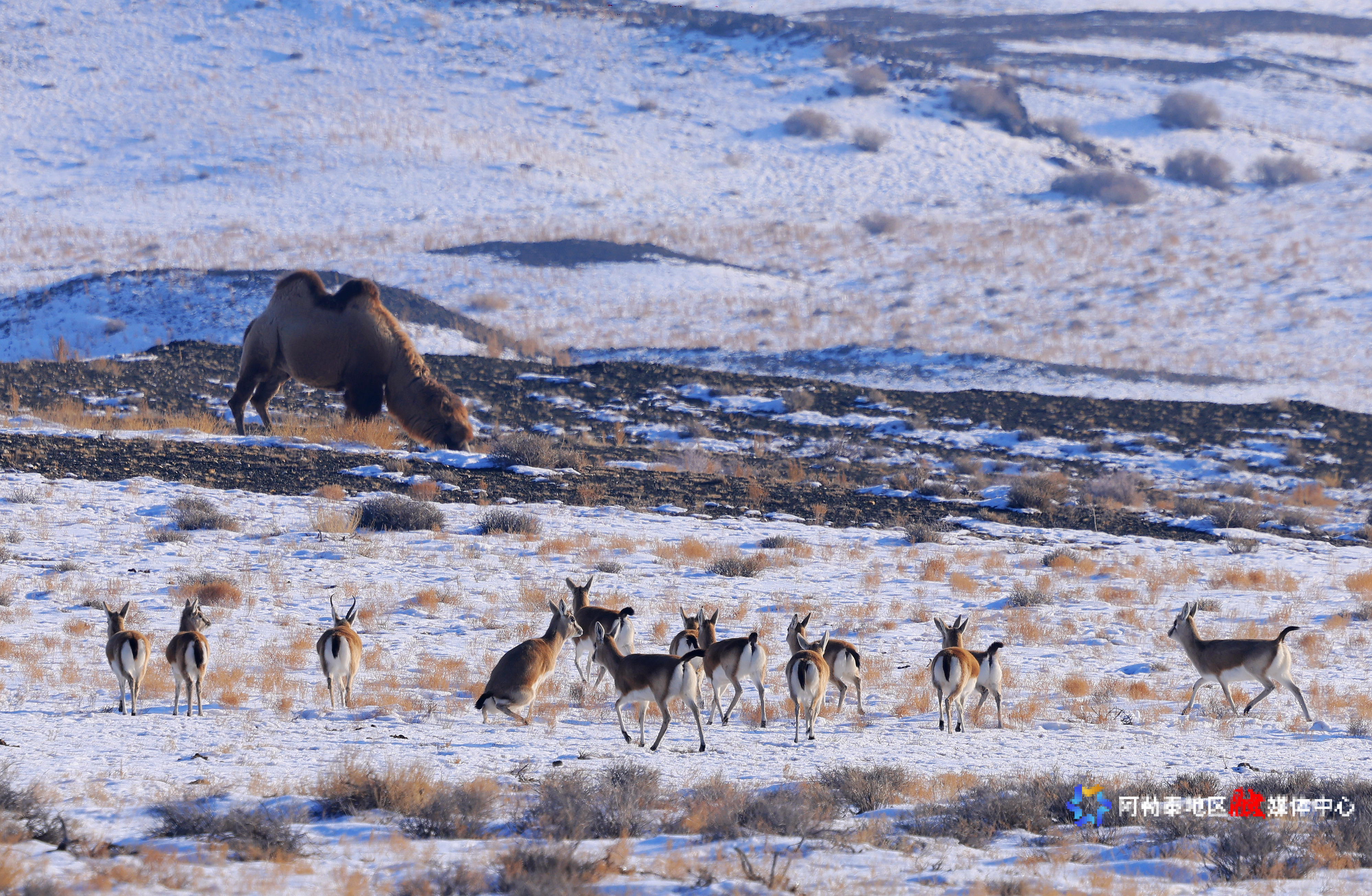 阿勒泰:成群鹅喉羚萨吾尔山觅食