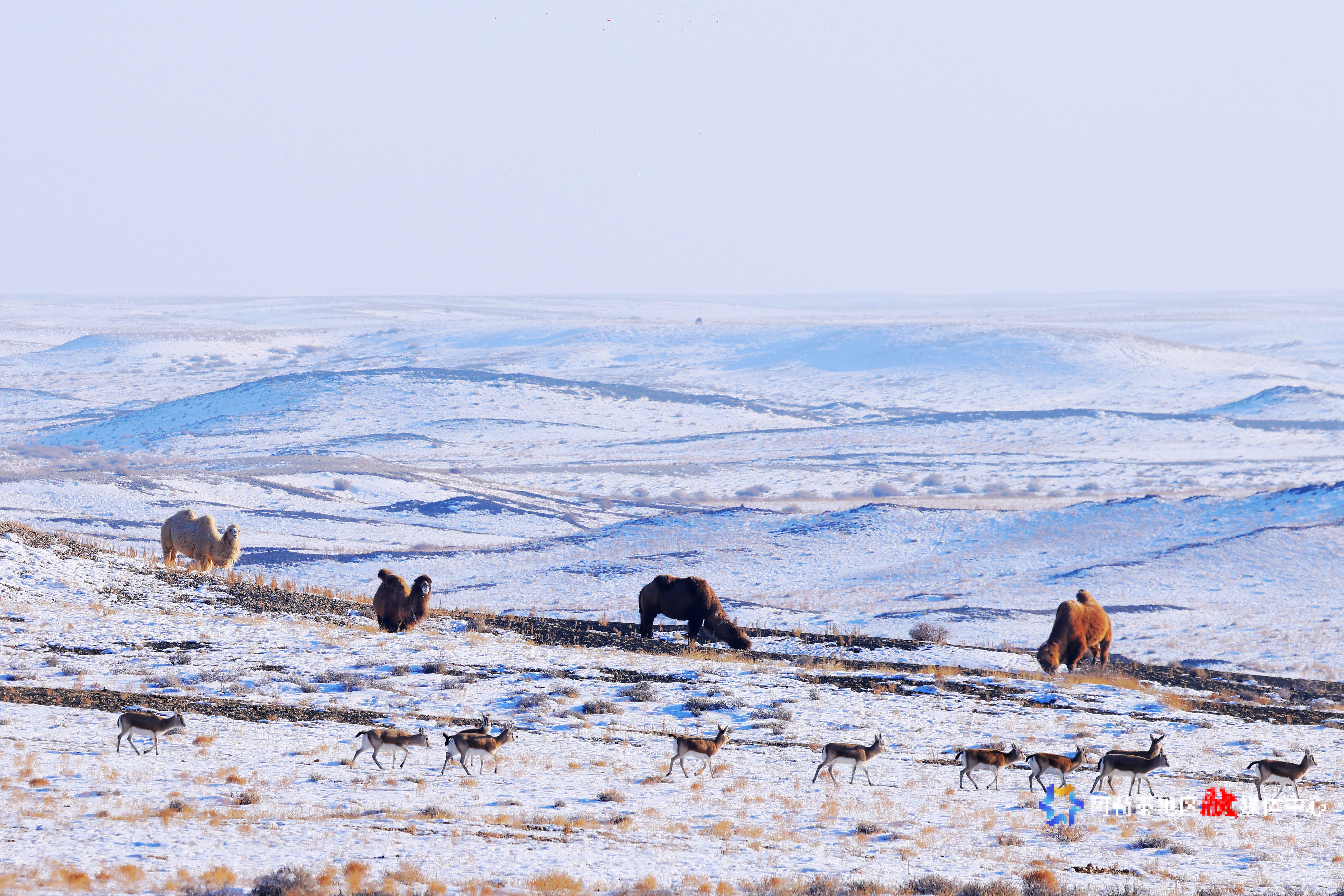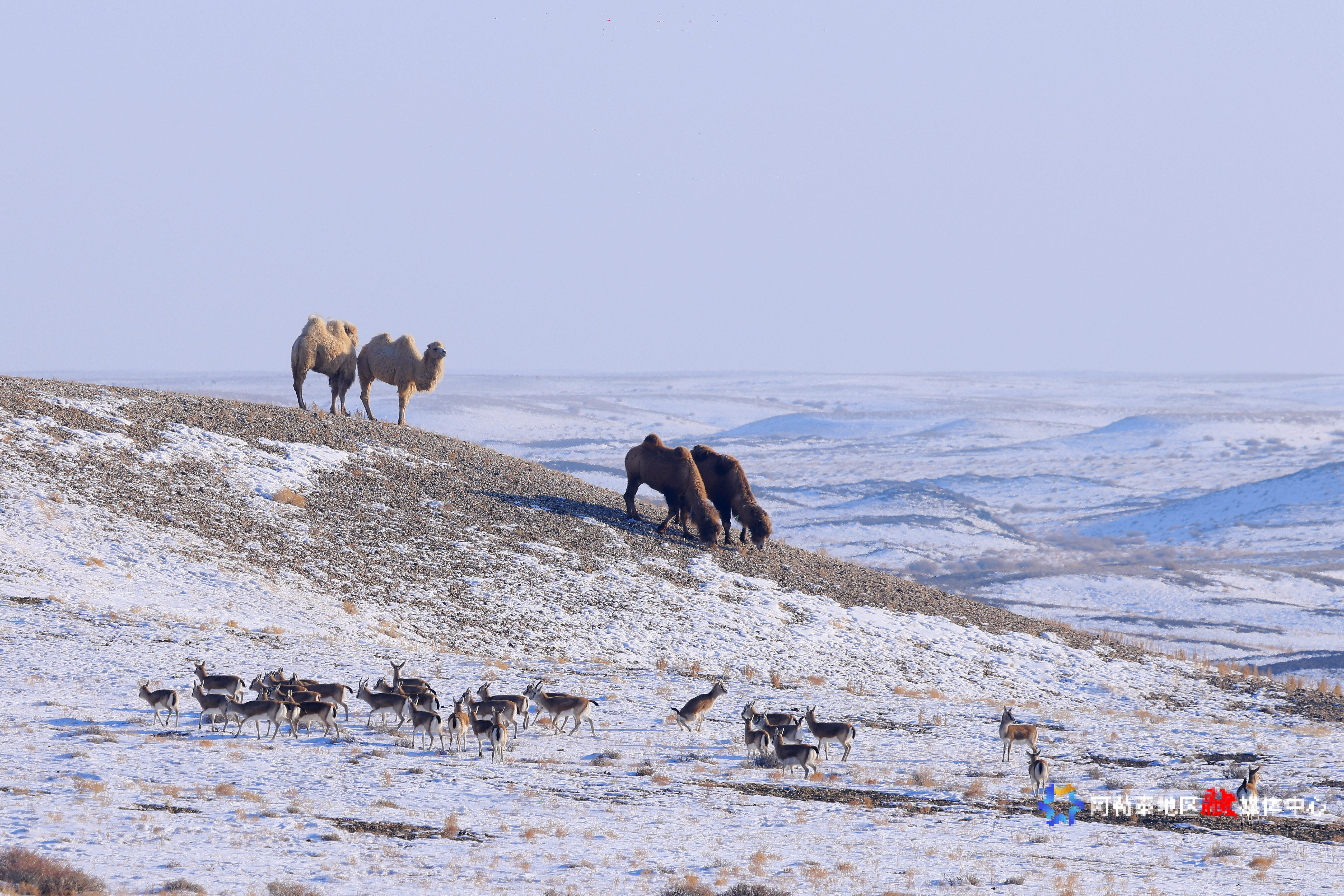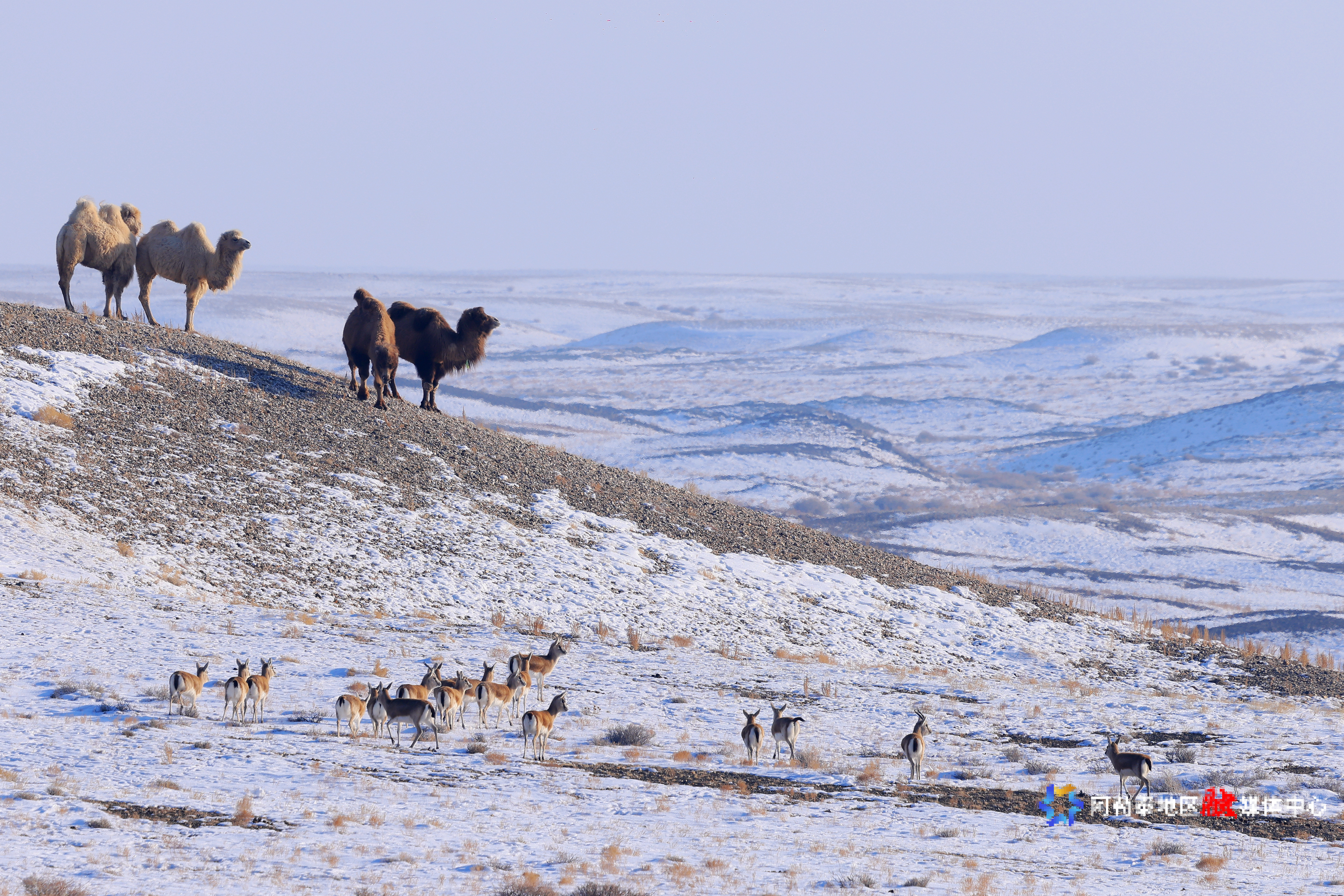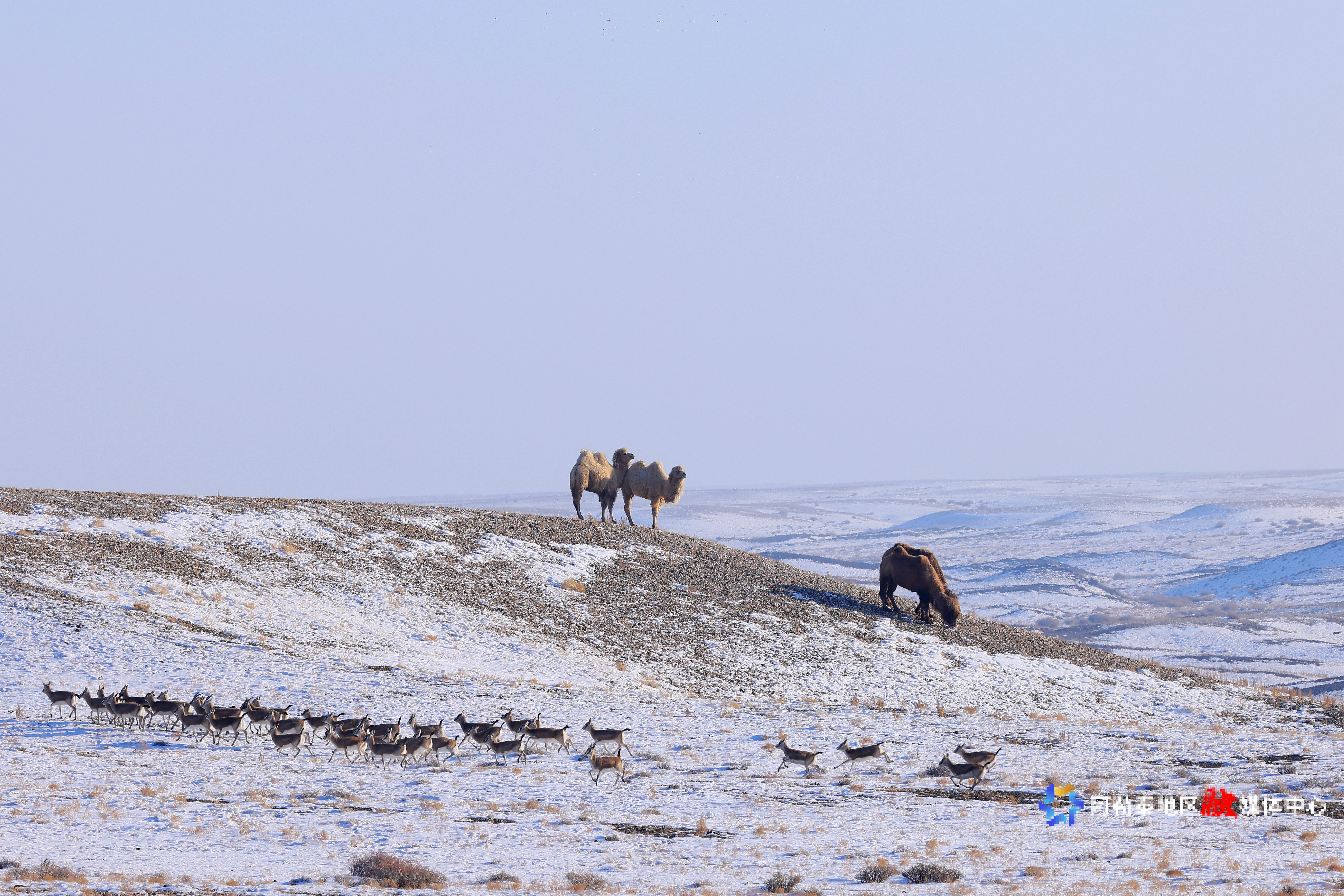 阿勒泰:成群鹅喉羚萨吾尔山觅食