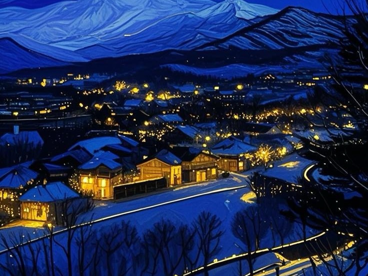 由AI生成的将军山夜色。