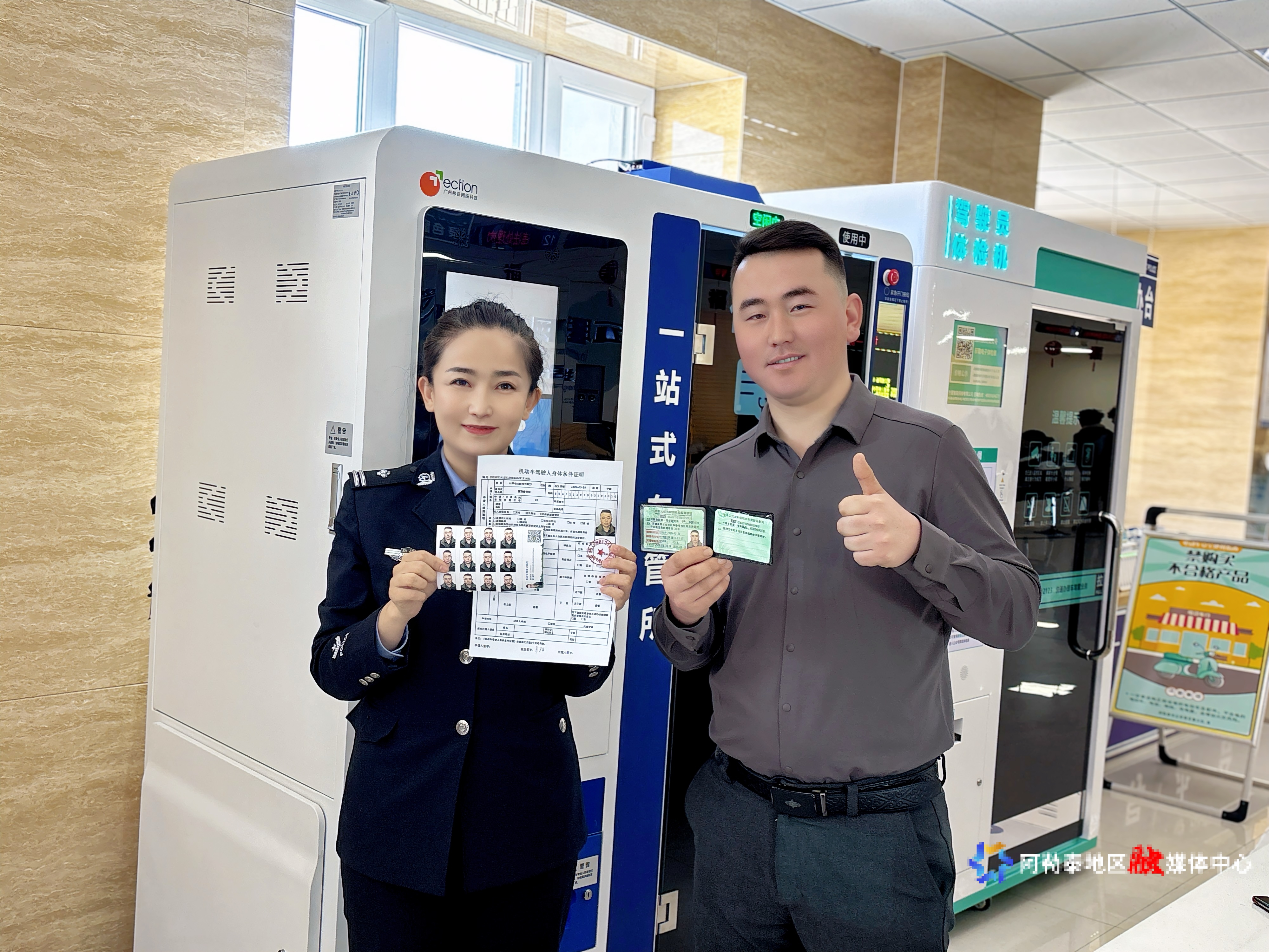 近日,阿勒泰市首台驾驶证自助制证机在市公安局交警大队车管所投用,该设备集语音引导、身份核验、自助缴费(通过交管12123APP扫码)、制证等功能于一体,可“一站式”办理期满换证、损毁换证、遗失补证等业务。市民仅需携带身份证,按提示完成拍照、缴费等流程,最快5分钟就能领取新证。此外,设备还搭载了“警医通”自助体检系统,驾驶员无需到医院进行体检,10分钟内即可完成体检和拍照。