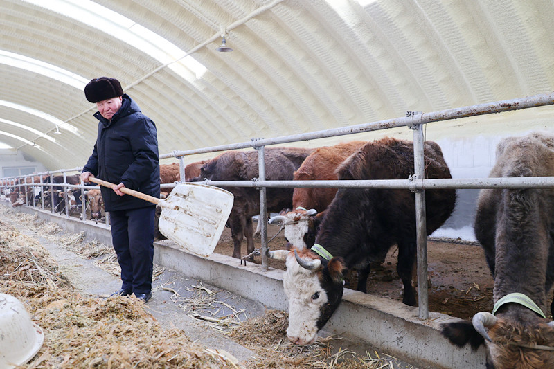 “现在,政府不仅为我们统一建设了青贮窖、生产库房和草料棚,还配套了饲草料加工设备,使整个操作流程变得更加便捷。养殖棚圈空间很大,内部环境业舒适,为牲畜提供了一个很好的育肥环境。目前,规模化养殖的经济效益也显著提升了。今后,我们会不断增加牲畜数量,改善自己的生活品质。”合得尔拜·哈克什说。
