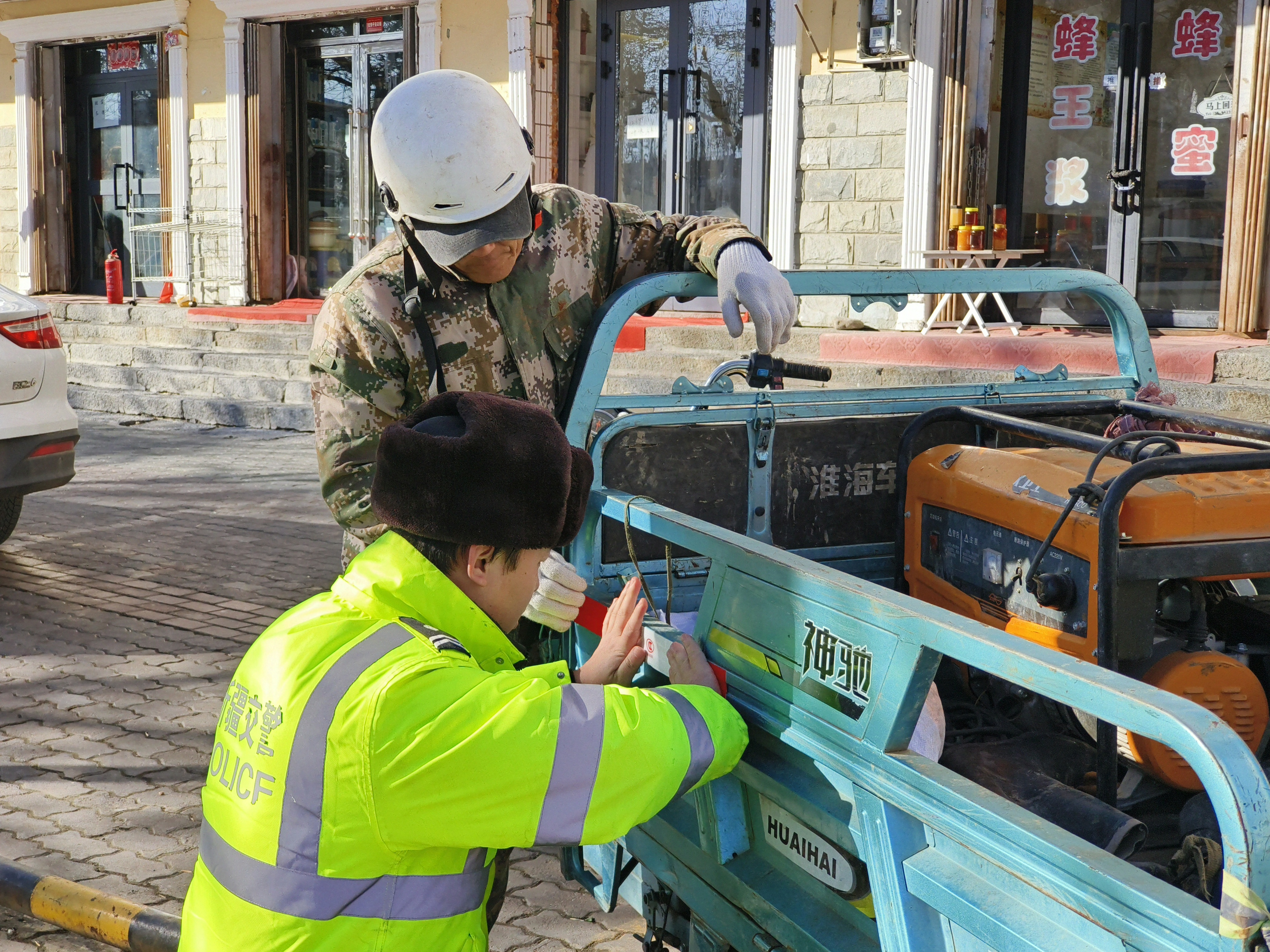 为不断增强广大人民群众道路交通安全意识,有效预防和减少交通事故发生。3月27日,哈巴河县公安局民辅警开展“亮尾行动”,为辖区非机动车辆粘贴反光贴,切实消除道路交通安全隐患,营造安全、有序、畅通的交通环境。