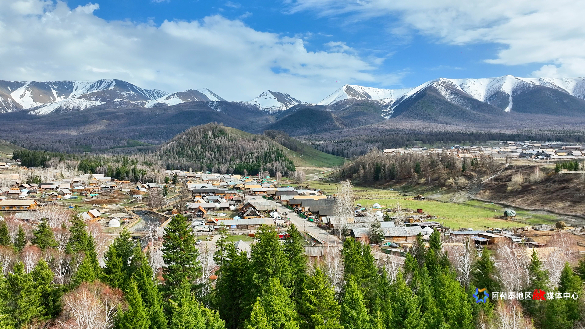 新疆“西北第一村”白哈巴村航拍全景。