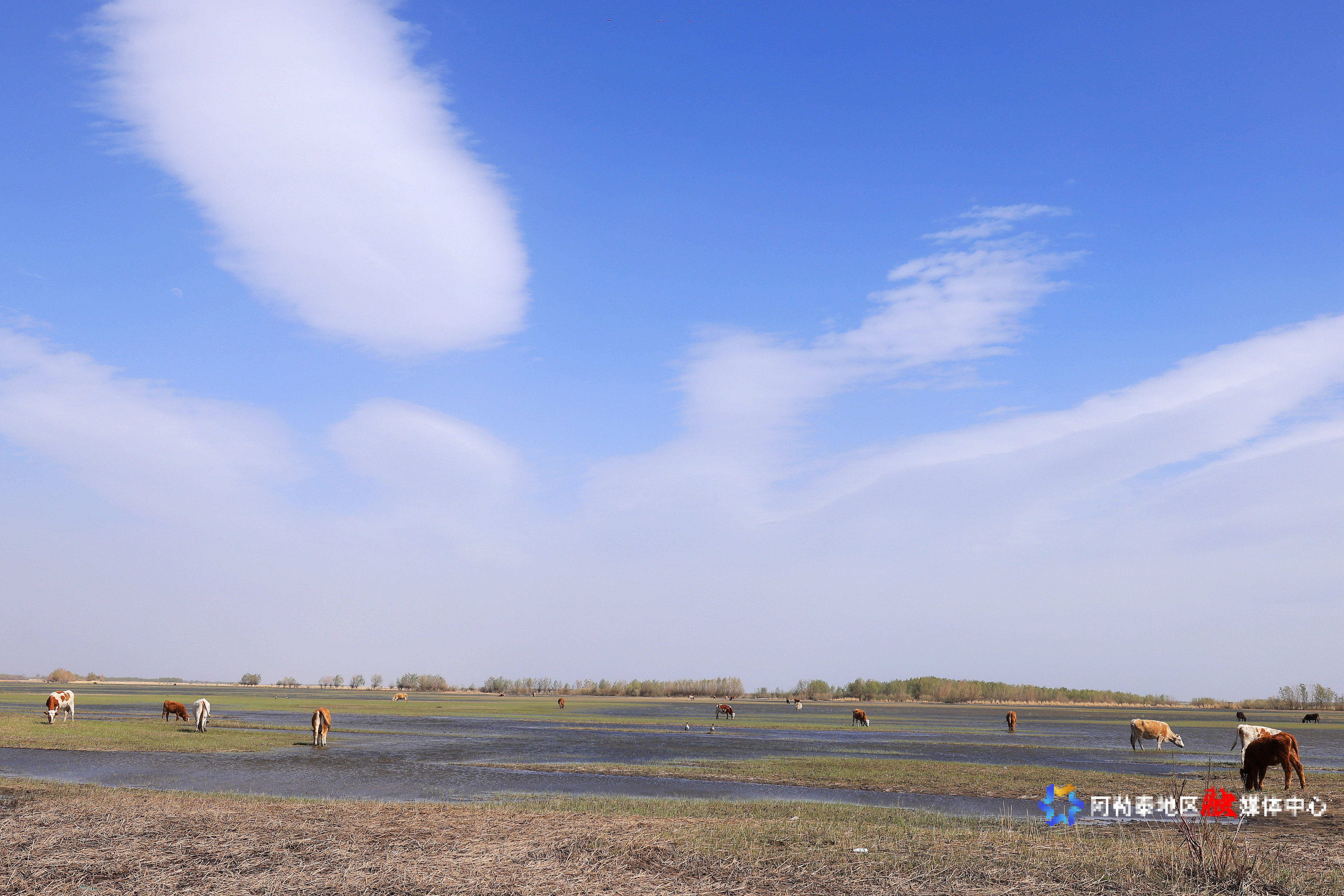 阿勒泰新闻网-阿勒泰地区融媒体中心(记者 阿尔达克·拜斯汗 摄)立夏以来,“我的阿勒泰”悄然换上最美丽的装扮。5月6日,在阿勒泰市克兰河下游,牛羊马驼悠然漫步,野鸭于浅湾处觅食嬉戏,蜿蜒的河水因这些灵动的身影更显勃勃生机。