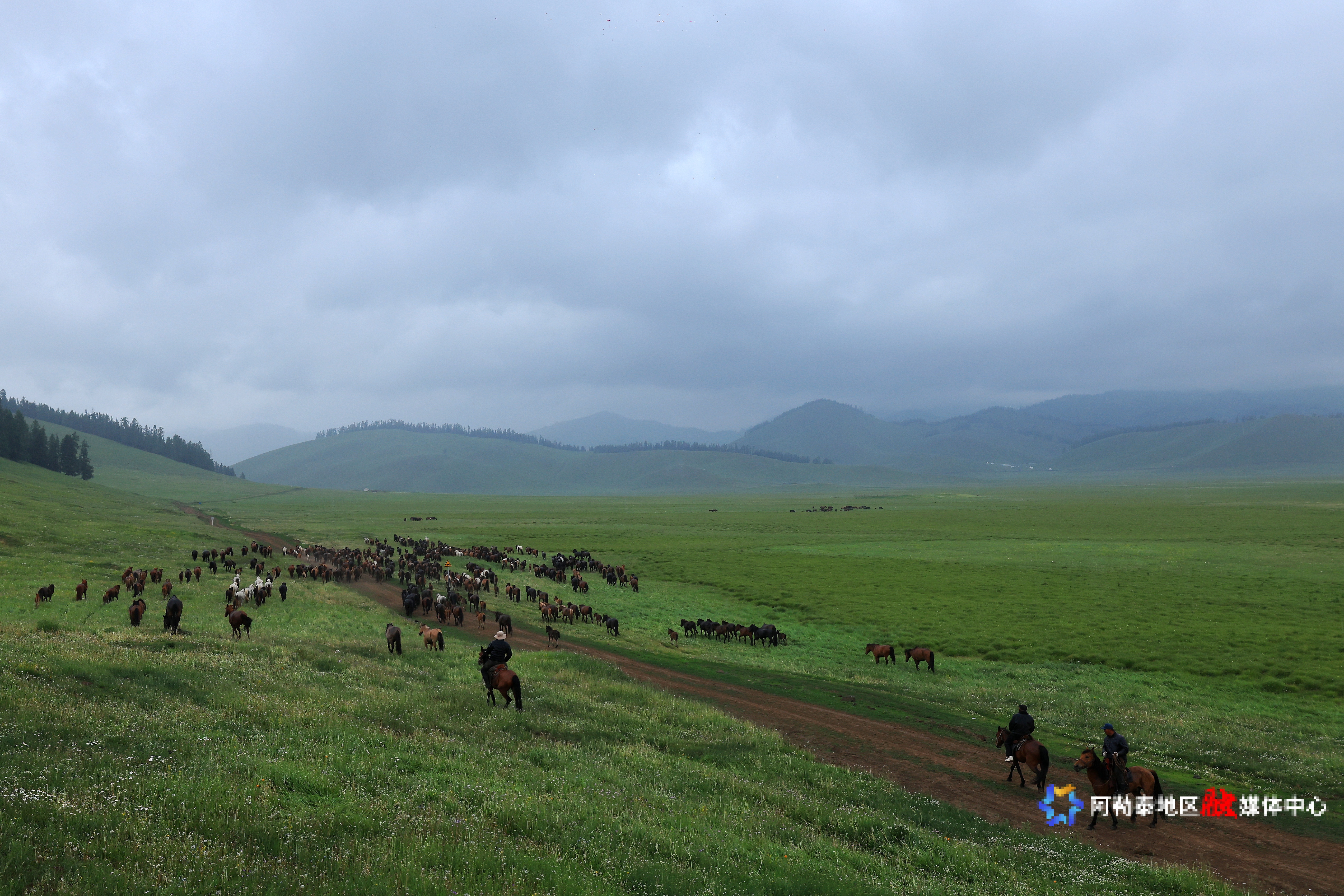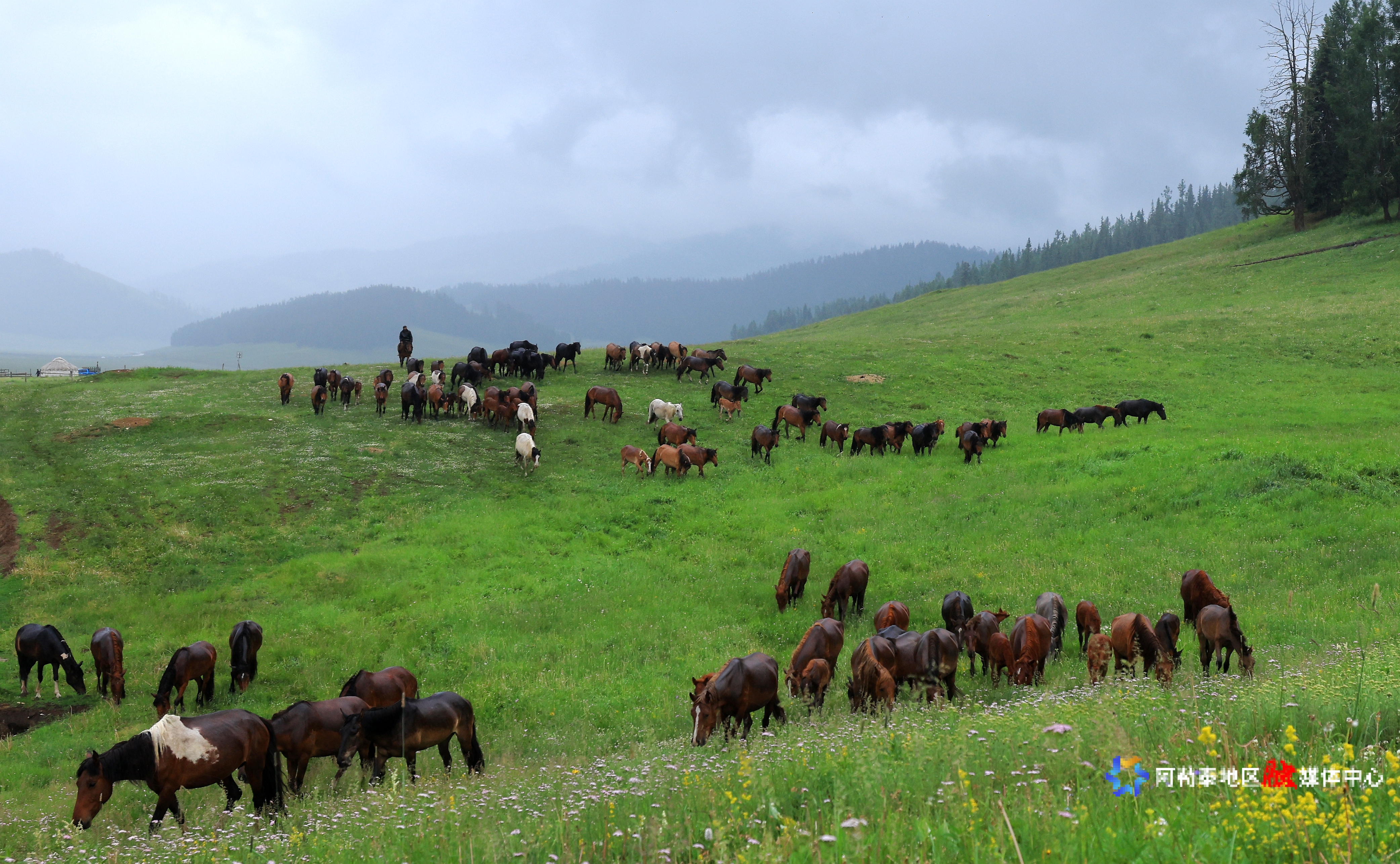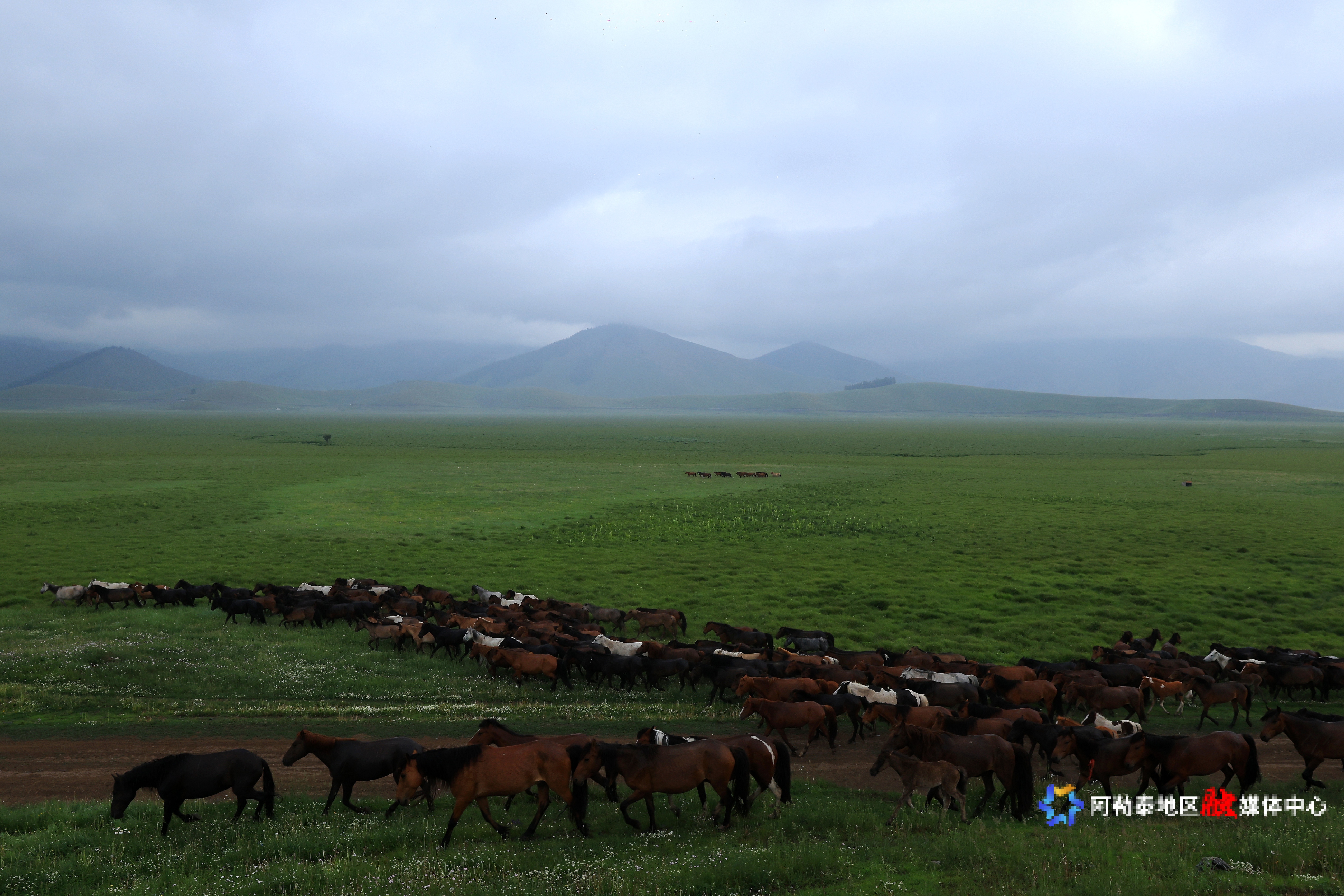 马群奔腾夏牧场