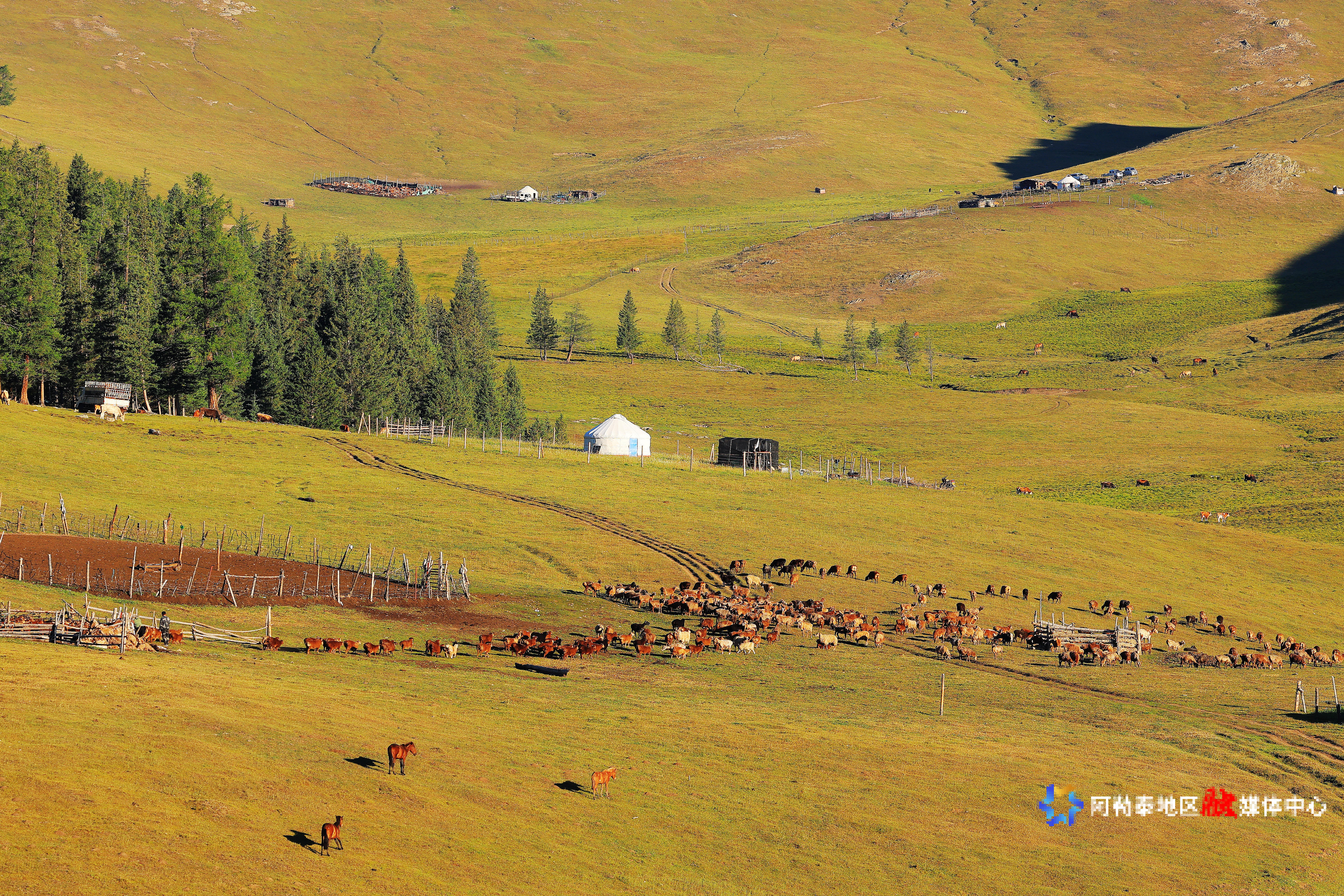 福海牧场羊成群 雪山融水育珍馐
