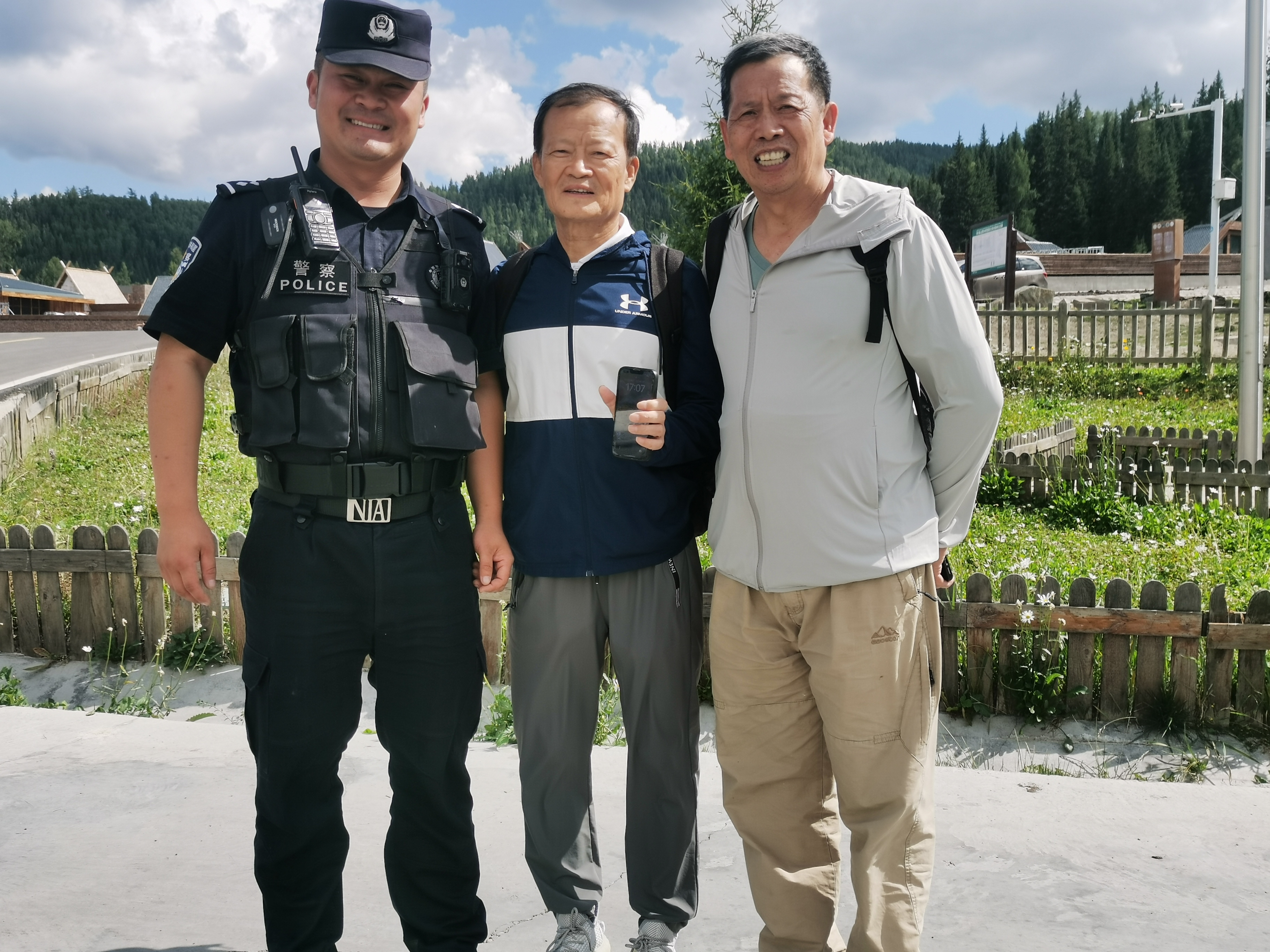 7月21日下午,北京游客王先生徒步时丢失价值8000元的手机,内存大量珍贵旅行照片。民警借助手机定位功能,冒雨在景区展开地毯式搜索,最终在一处观景台栏杆处找到手机。王先生为民警点赞:“喀纳斯不仅有美景,更有暖心警察!”