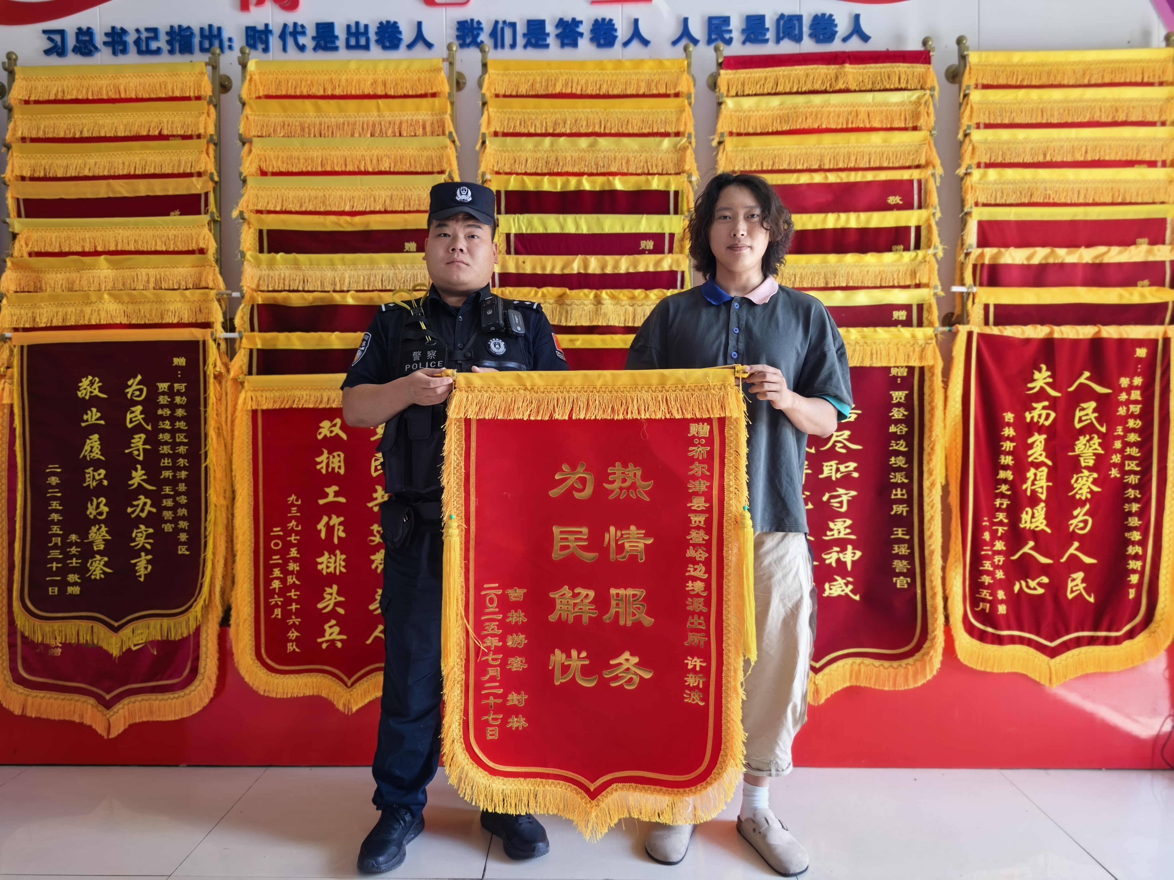 据了解,今年,贾登峪边境派出所已累计为游客提供寻物求助服务560次,找回物品总价值超120万元,收获锦旗28面。
