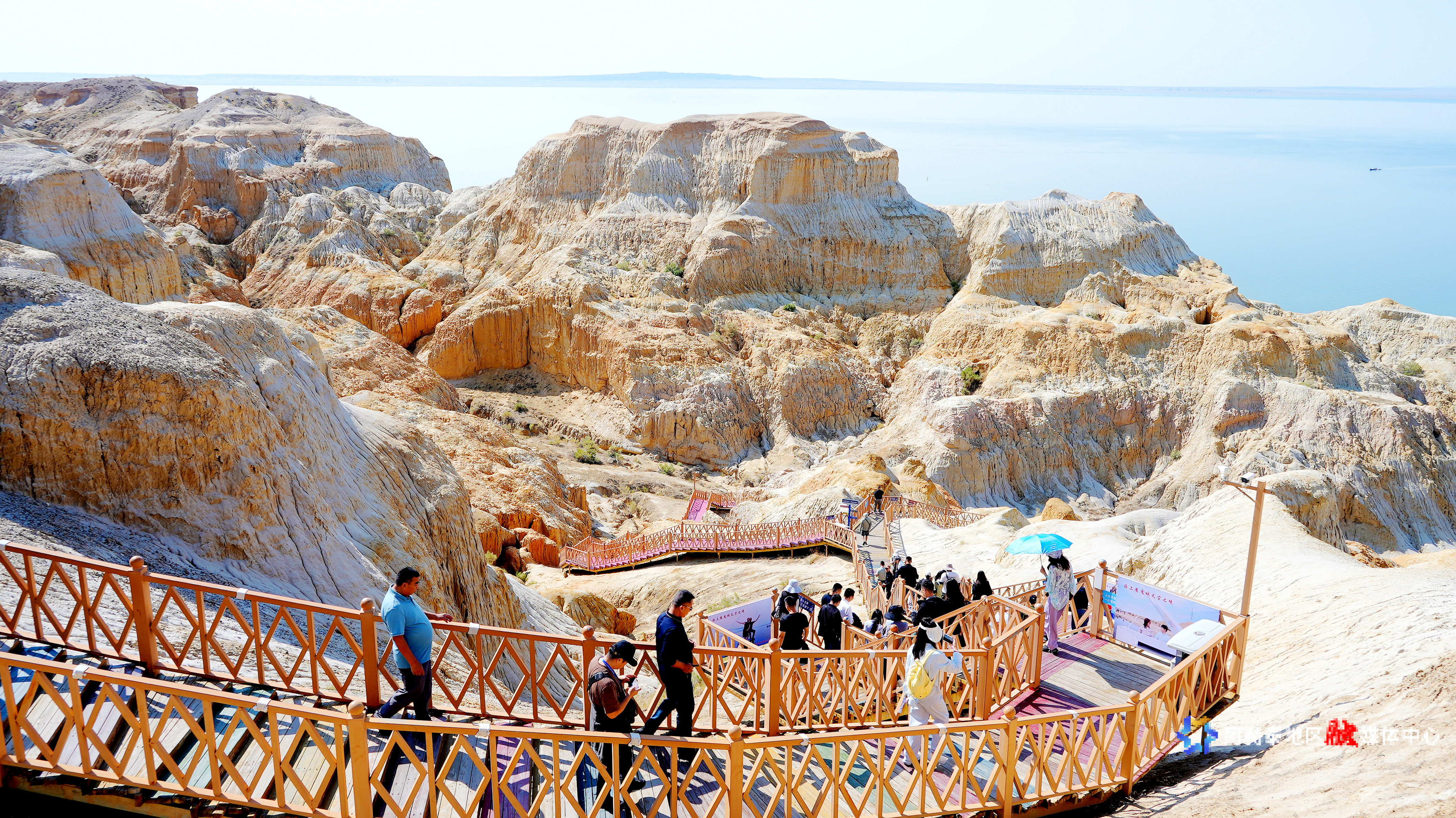 采访团首站抵达福海县乌伦古湖海上魔鬼城景区。该景区融合雅丹地貌的雄浑与湖泊风光的秀丽,曾作为多部影视剧取景地。“依托得天独厚的自然禀赋,我们打破传统观光模式,创新推出‘地质研学+民俗体验’融合业态。”福海县文化体育广播电视和旅游局副局长朱艳阳介绍说,冬季乌伦古湖举办冬捕节,展示古老渔猎文化,吸引游客体验“踏雪寻鱼”的北疆风光;夏季推出“泛舟湖面观雅丹、骑行湖畔赏风光、乘热气球瞰全景”的“海陆空”立体游览项目,全方位展现景区魅力。数据显示,今年以来,福海县接待游客量同比增长70%,如今,昔日小众的地质奇观已成为带动周边群众就业增收的“网红打卡地”,不少牧民通过经营民宿、售卖手工艺品实现“家门口”致富。采访团记者沿木栈道穿行于形态各异的雅丹群中,感受自然与人文融合的文旅魅力,用镜头记录湖面波光与土丘沟壑交织的独特景致。