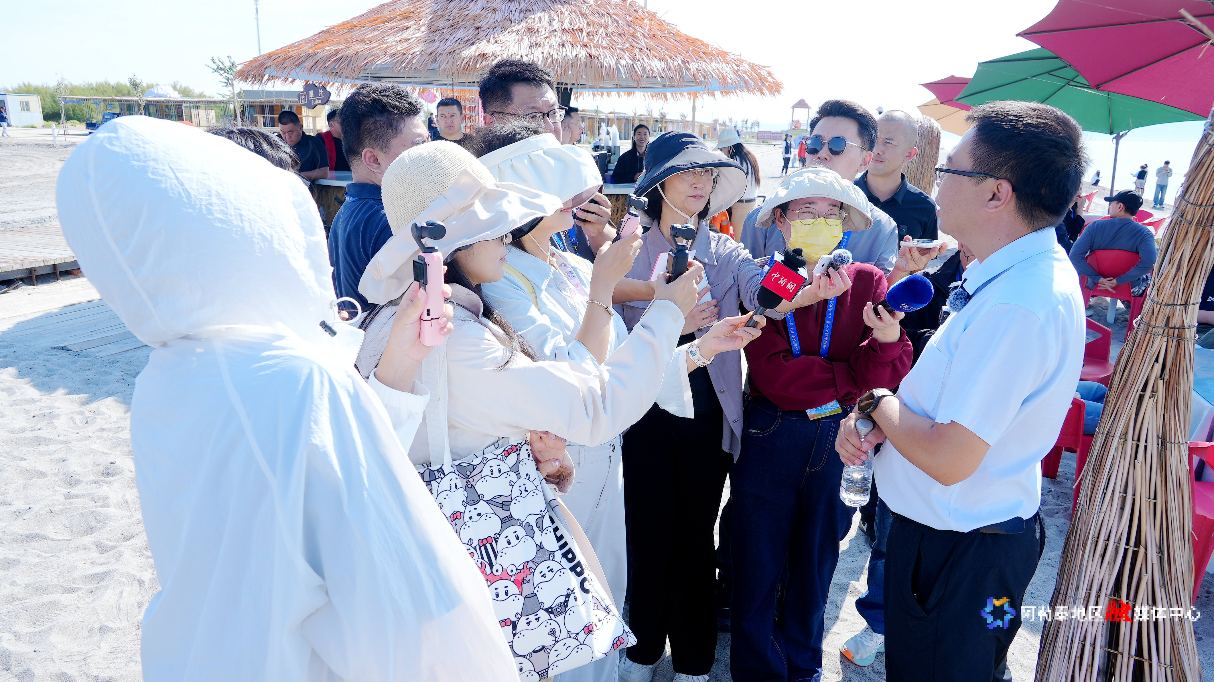 采访团在乌伦古湖金沙滩景区进行采访。记者张福新 摄