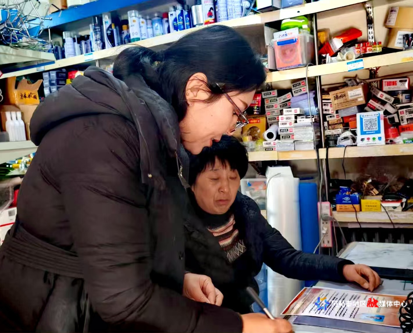 工作人员向群众普及法律法规、防电信诈骗、安全生产、民族团结等知识。记者 叶尔兰·马德提摄