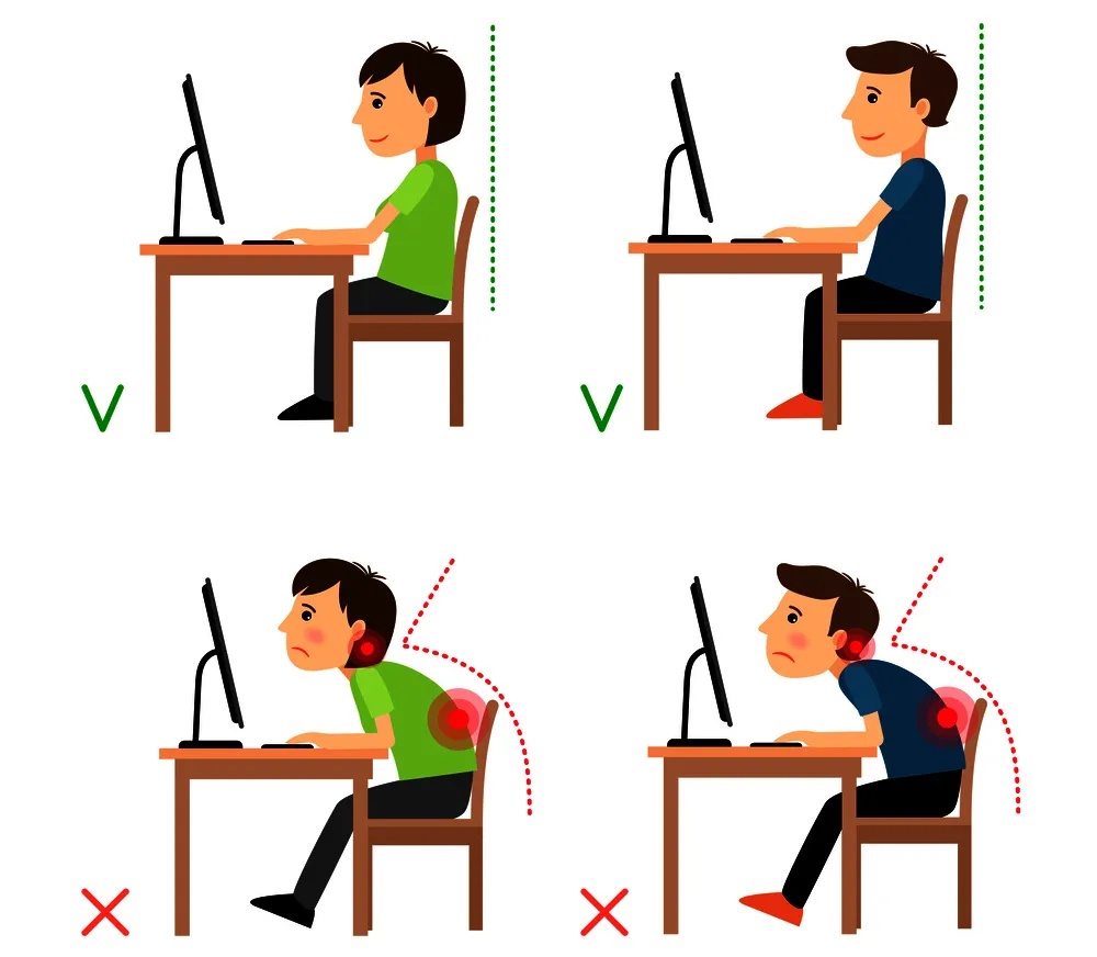 有的人习惯只坐椅子的一半,背部斜靠椅背,腰部悬空,这样对腰伤害很大。坐下时应将臀部靠近椅背,并用靠垫支撑腰部,使腰保持S曲线。