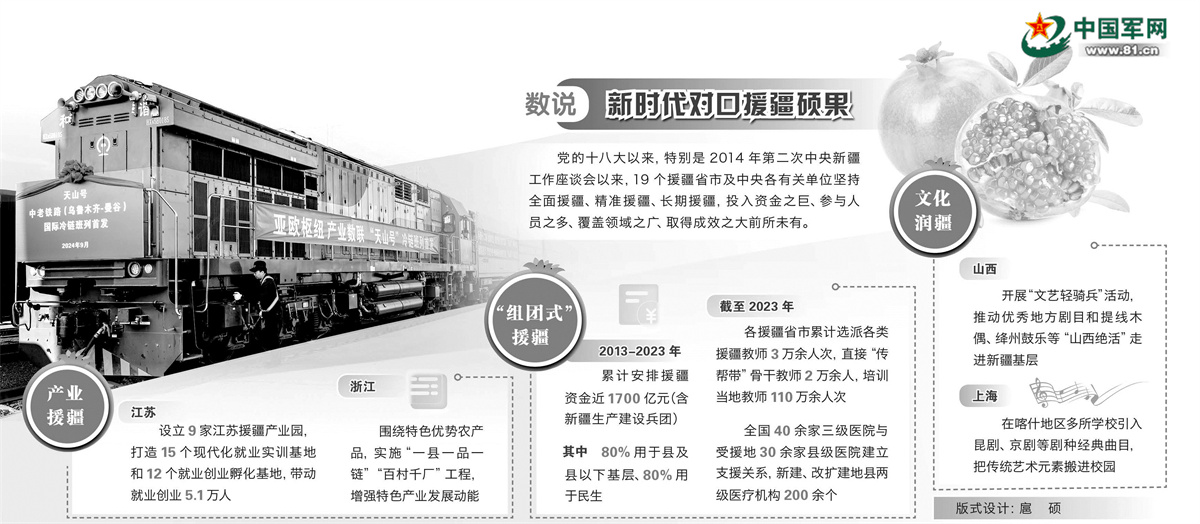 “民族团结一家亲号”特快旅客列车跨越7个地州,平均每天输送上千名干部职工到新疆各地“探亲”帮扶;菁菁校园,库尔勒市梨香小学学生与千里之外的河北省石家庄市3所共建小学同上一堂课,讲述民族团结故事;互联网上,柯尔克孜族牧民阿布都加帕尔·猛德帮助游客摆脱困境后,骄傲地亮出胸前的党员徽章……天山南北,各族群众心手相连的故事不断上演。