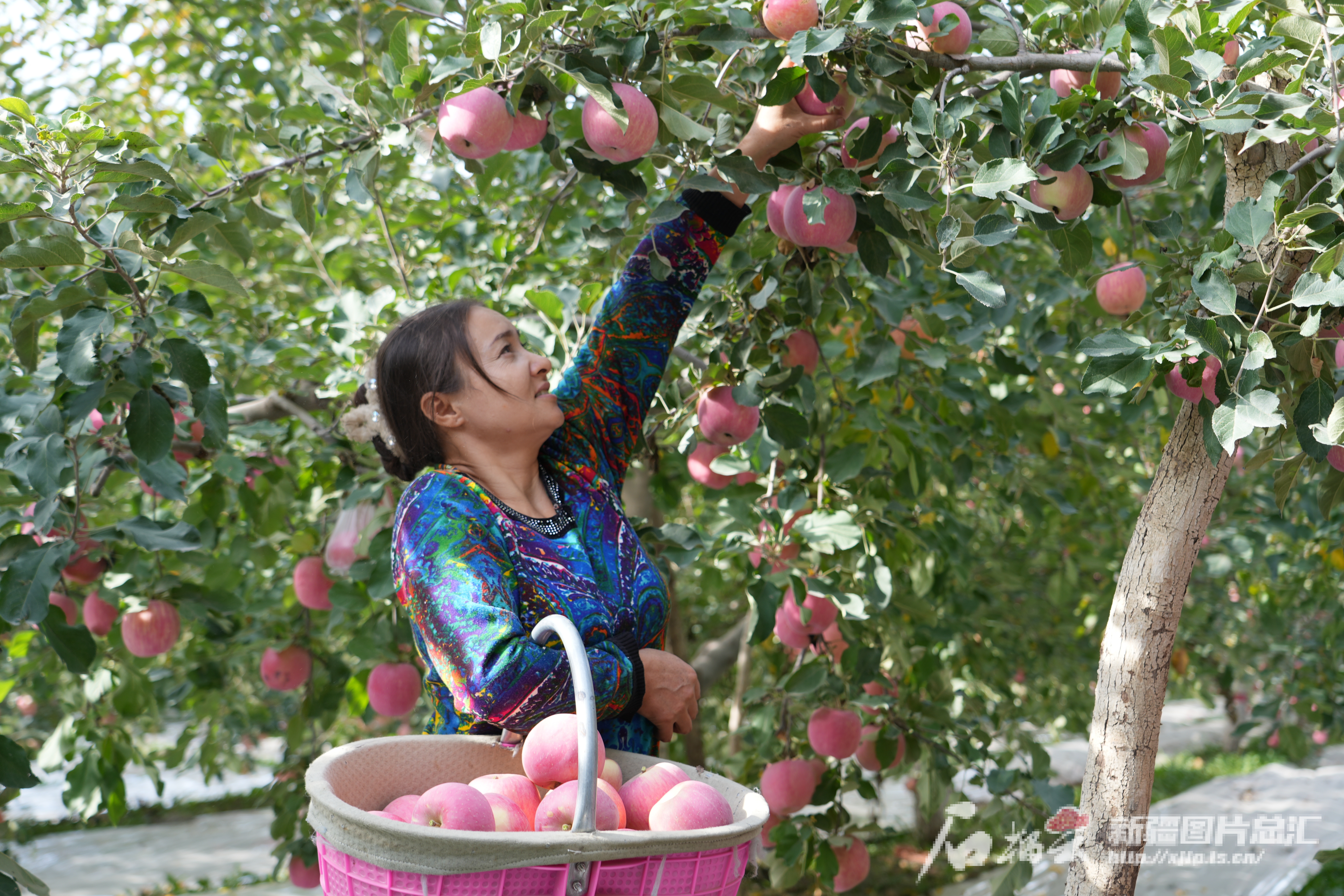 金秋十月,阿克苏市依干其镇阔什托格拉克村的苹果园迎来丰收采摘季,红彤彤的苹果压弯了枝头。阿克苏市融媒体中心供图