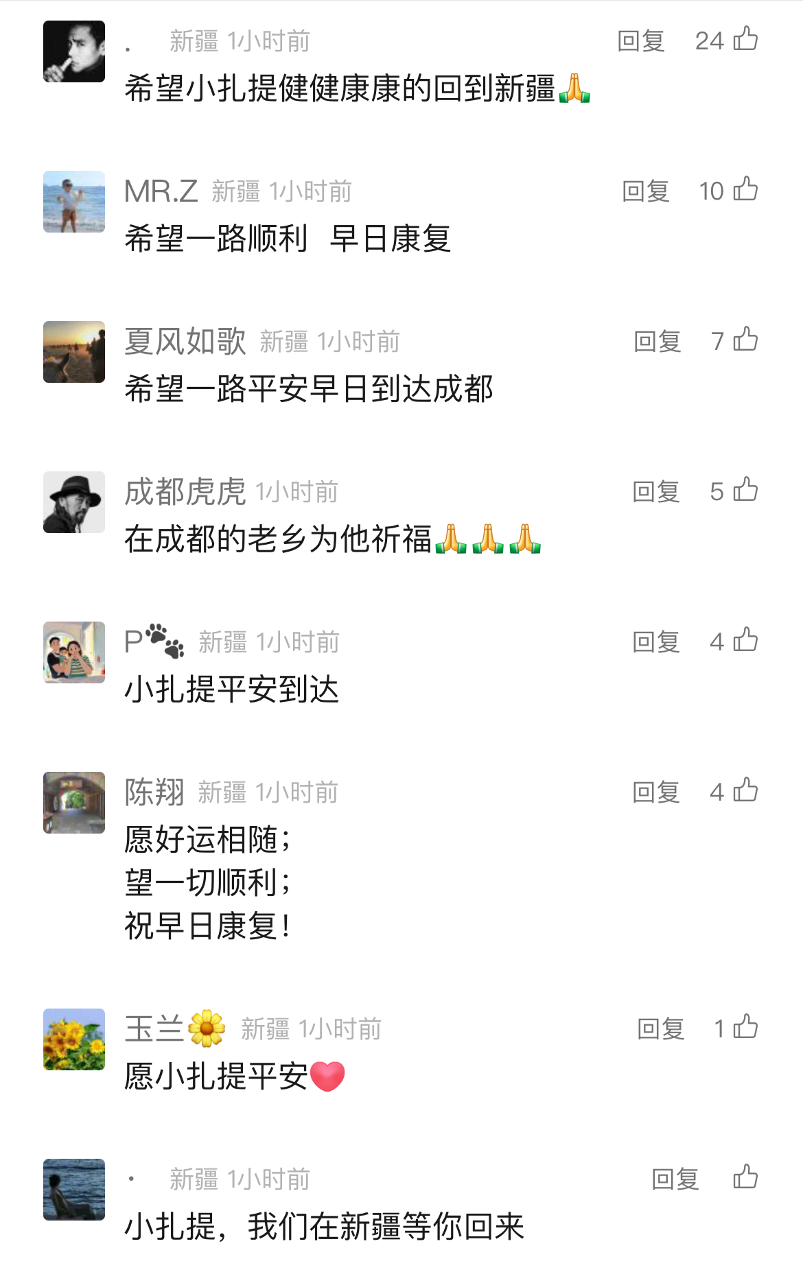 直播一经发布,迅速引起关注,小扎提的病情牵动着众人的心,网友们纷纷留言“希望一路平安早日到达成都”“希望小扎提健健康康回到新疆”。
