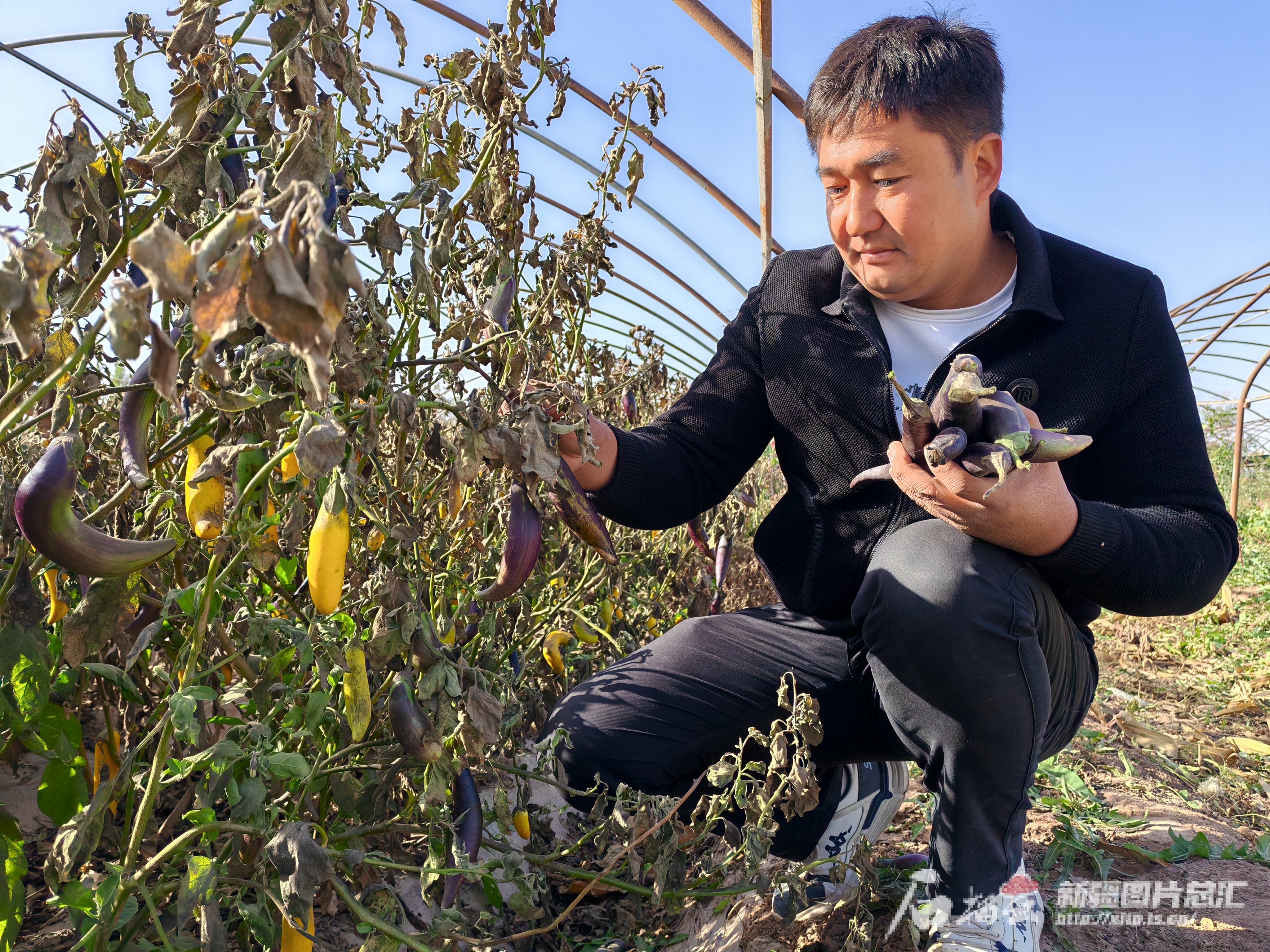 巴楚县多来提巴格乡恰江村村民伊丽牙斯·吾拉依木采摘最后一茬土茄子。天山网-新疆日报记者 逯风暴 摄