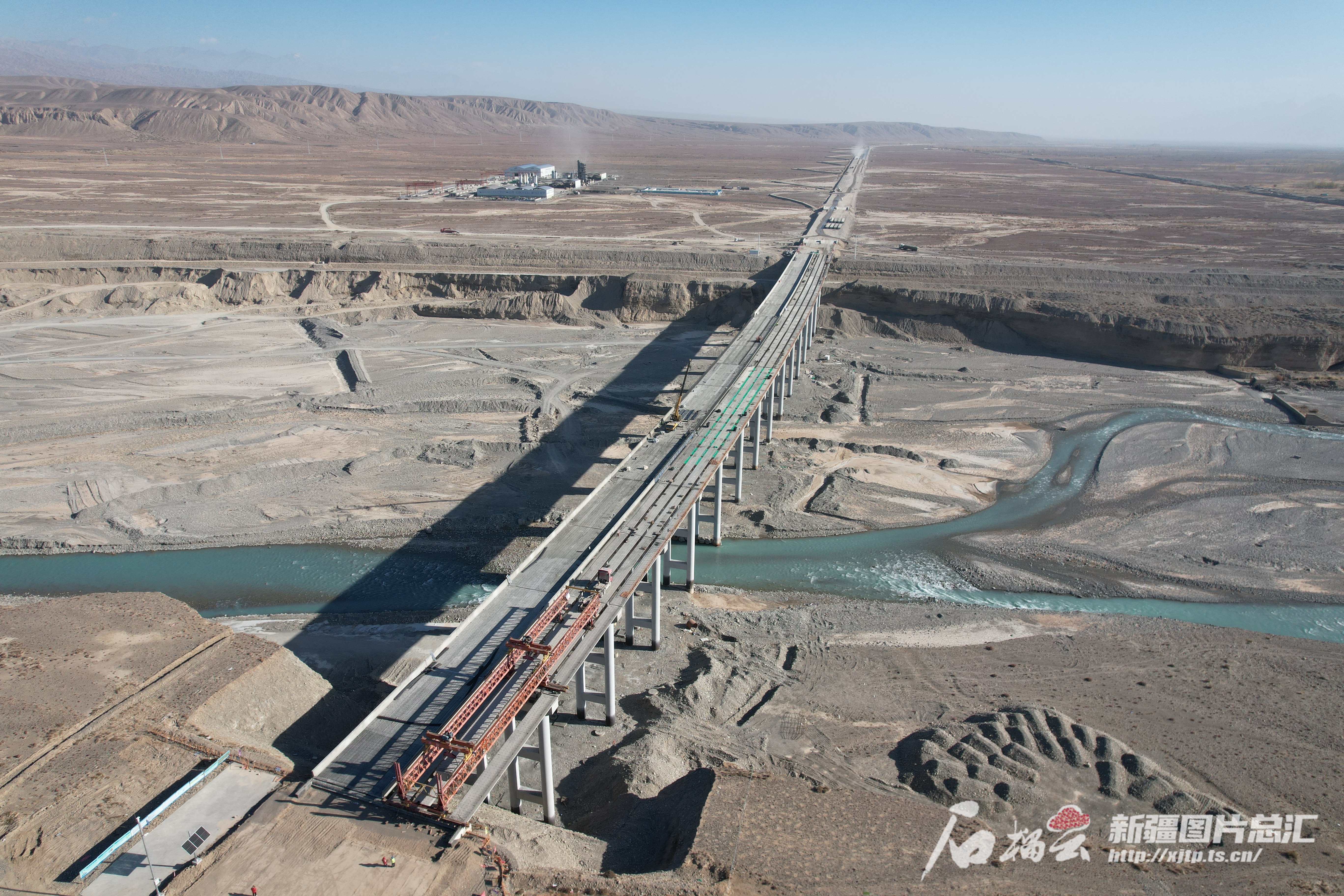 10月31日,G219线阿克苏至乌什至阿合奇公路项目玉山古西河大桥在架设梁板。邓阳 摄