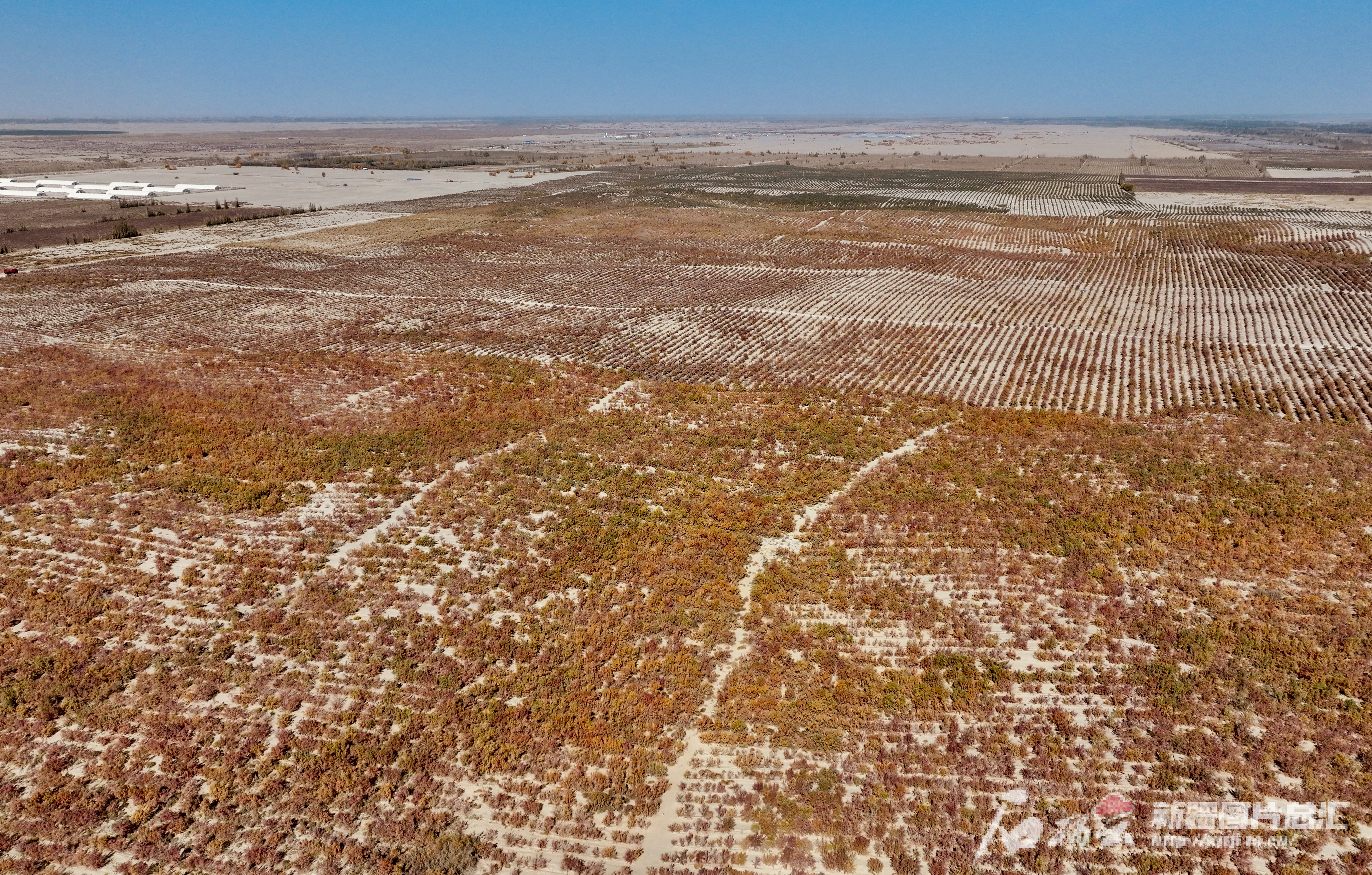 和田县英艾日克乡防风治沙点(10月31日无人机摄)。