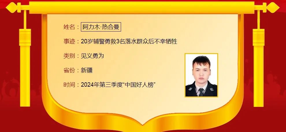 新疆2人入选2024年第三季度“中国好人榜”