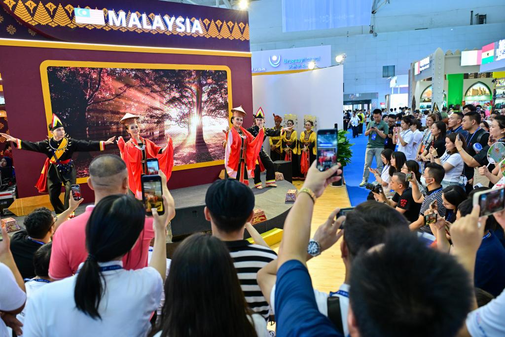 6月26日,在第八届中国-亚欧博览会上,参观者在马来西亚展区观看文艺表演。新华社记者 丁磊 摄