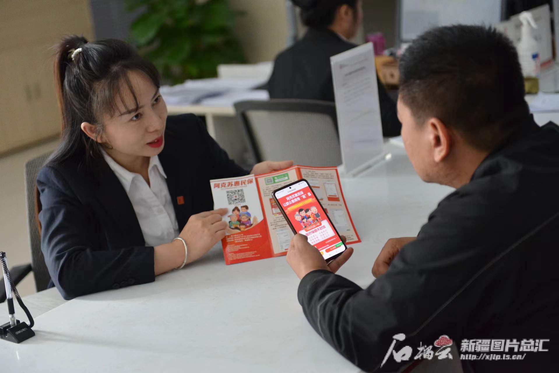 在阿克苏一家承办“惠民保”的商业保险公司服务专窗,参保群众在咨询办理“惠民保”。(资料图)