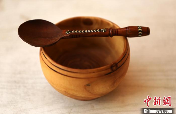 买吐送·斯拉木的木雕作品,木饭碗及木勺子。于田县文化馆供图