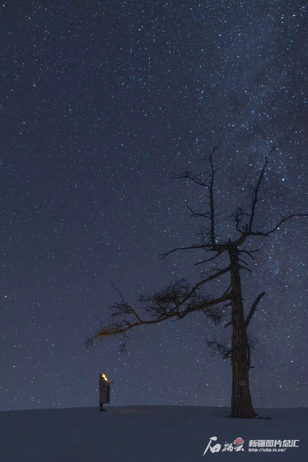 位于哈巴河县的《我的阿勒泰》取景地——孤独的树,大雪过后,不少游客去拍摄星空。海波 摄