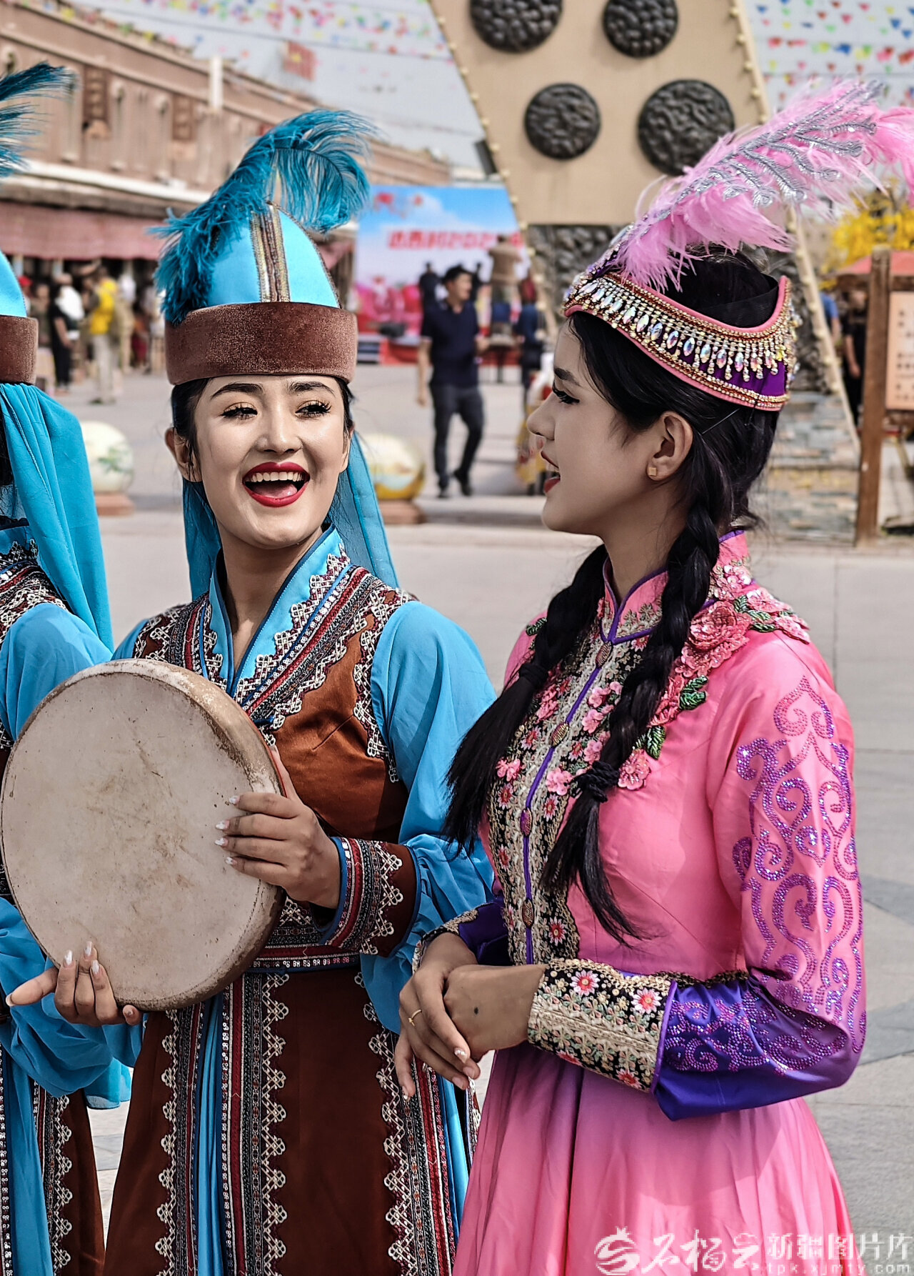9月9日,“砥砺奋进七十载 天山南北谱华章”大型集中采访活动采访团记者在尉犁县兴平镇达西村拍摄演员表演。