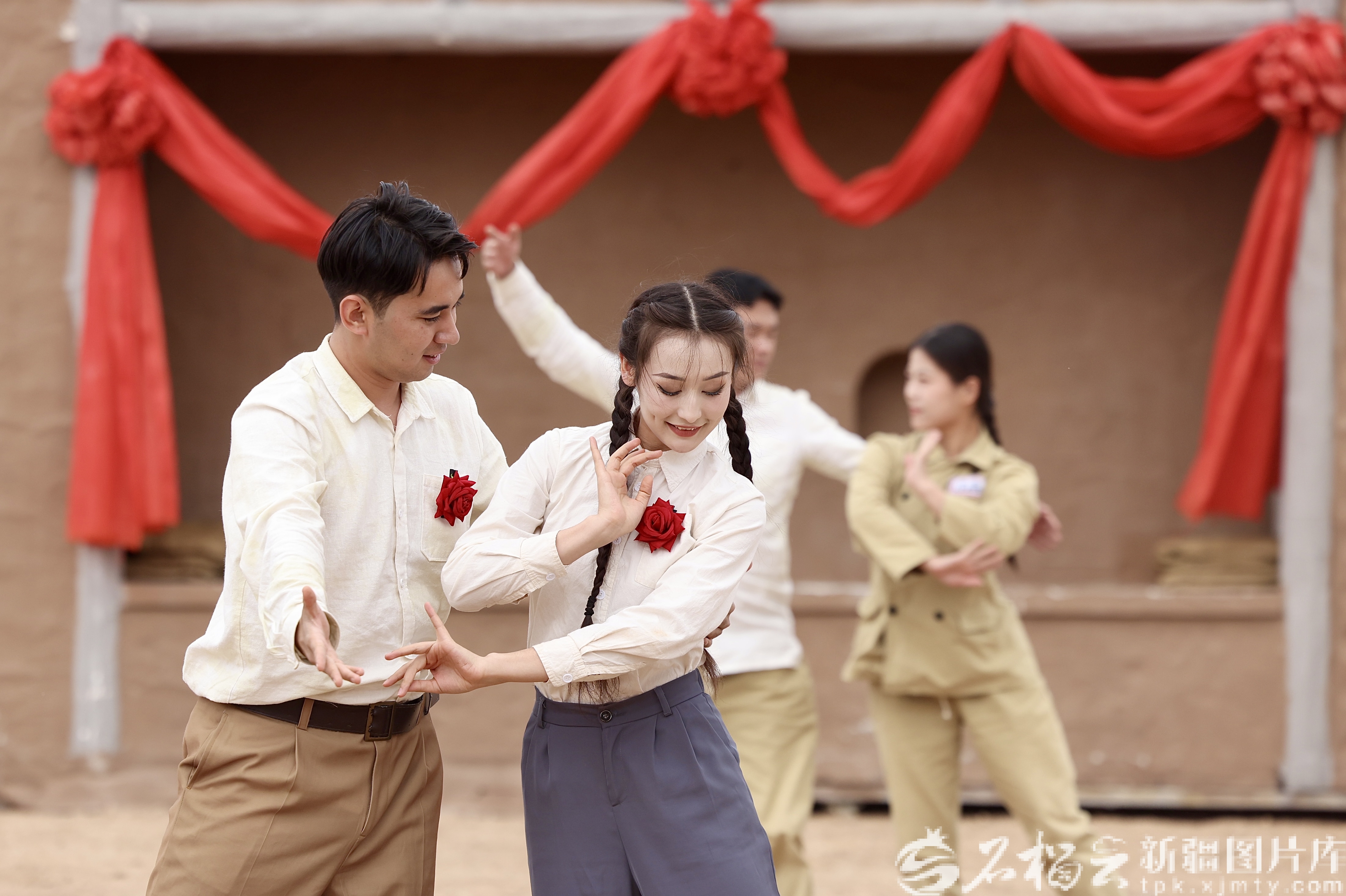 9月12日,军垦地窝子遗址纪念园演员在表演情景剧《地窝子里的婚礼》。