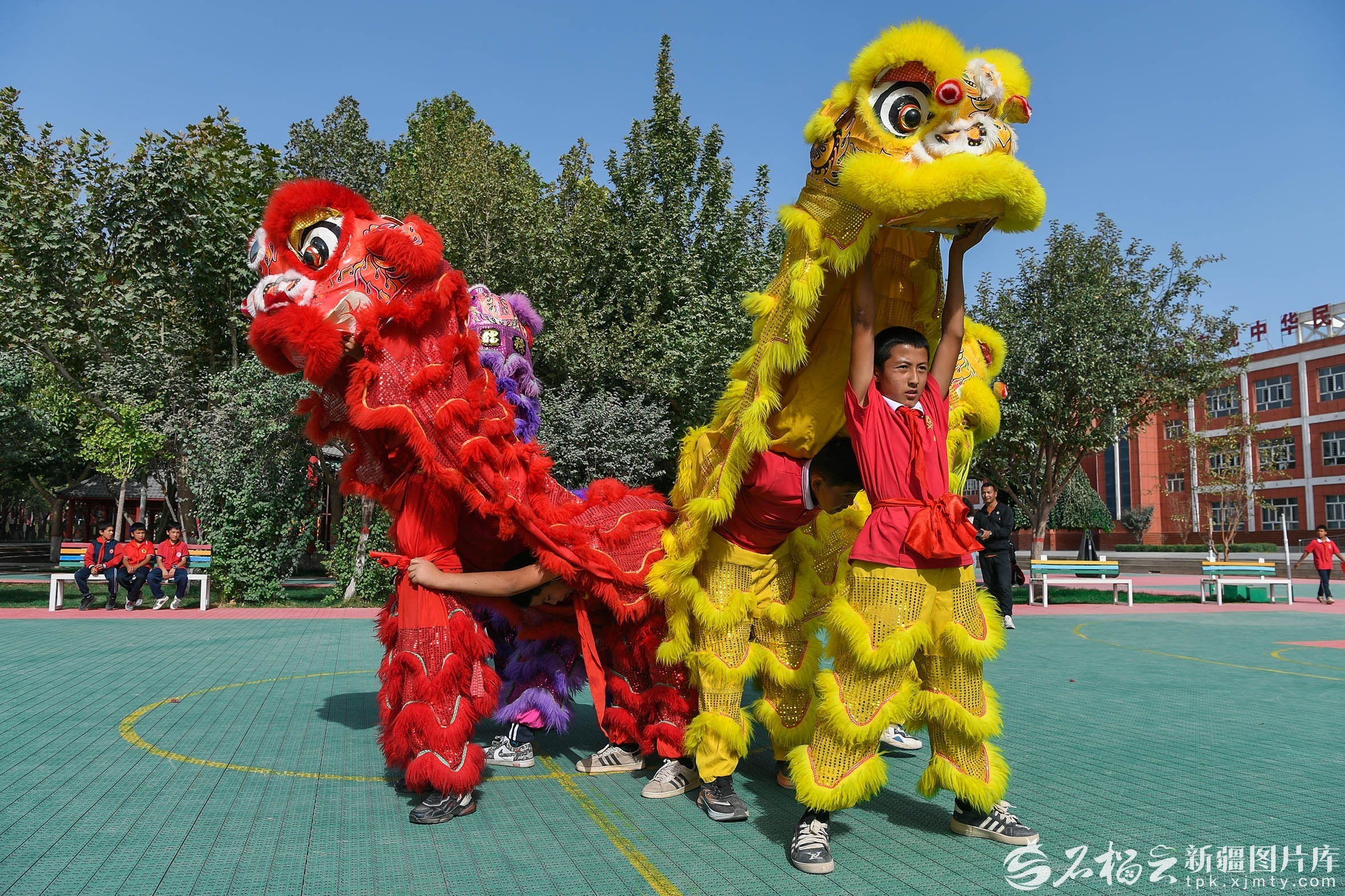 天山网-新疆日报讯(记者约提克尔·尼加提摄影报道)“咚咚锵!咚咚锵!” 9月19日,在疏附县托克扎克镇中心小学的操场上,伴随着清脆响亮的锣鼓声,几只色彩鲜艳的 “狮子” 正灵活地跳跃、翻滚。这是学校第二课堂的舞狮活动现场,学生们穿着整齐的服装,在老师的指导下,动作娴熟地操控着 “狮子”,脸上满是专注与兴奋,周围围观的同学不时发出阵阵欢呼,整个校园充满了活力与欢声笑语。