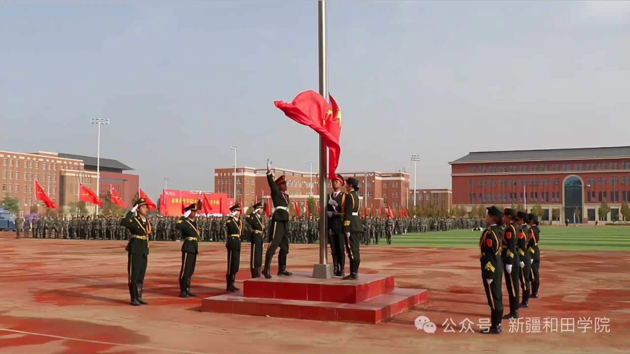 9月15日,新疆和田学院2025级新生开学典礼上,学生正在升国旗。图片由新疆和田学院提供