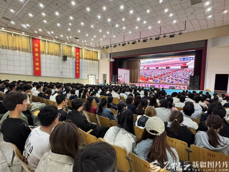 9月25日,在新疆和田学院南校区礼堂,各族师生收看庆祝大会盛况。卢瑛摄