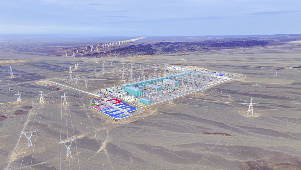 9月22日在新疆巴音郭楞蒙古自治州若羌县拍摄的三峡集团“疆电外送”第四通道电源项目施工现场(无人机照片)。