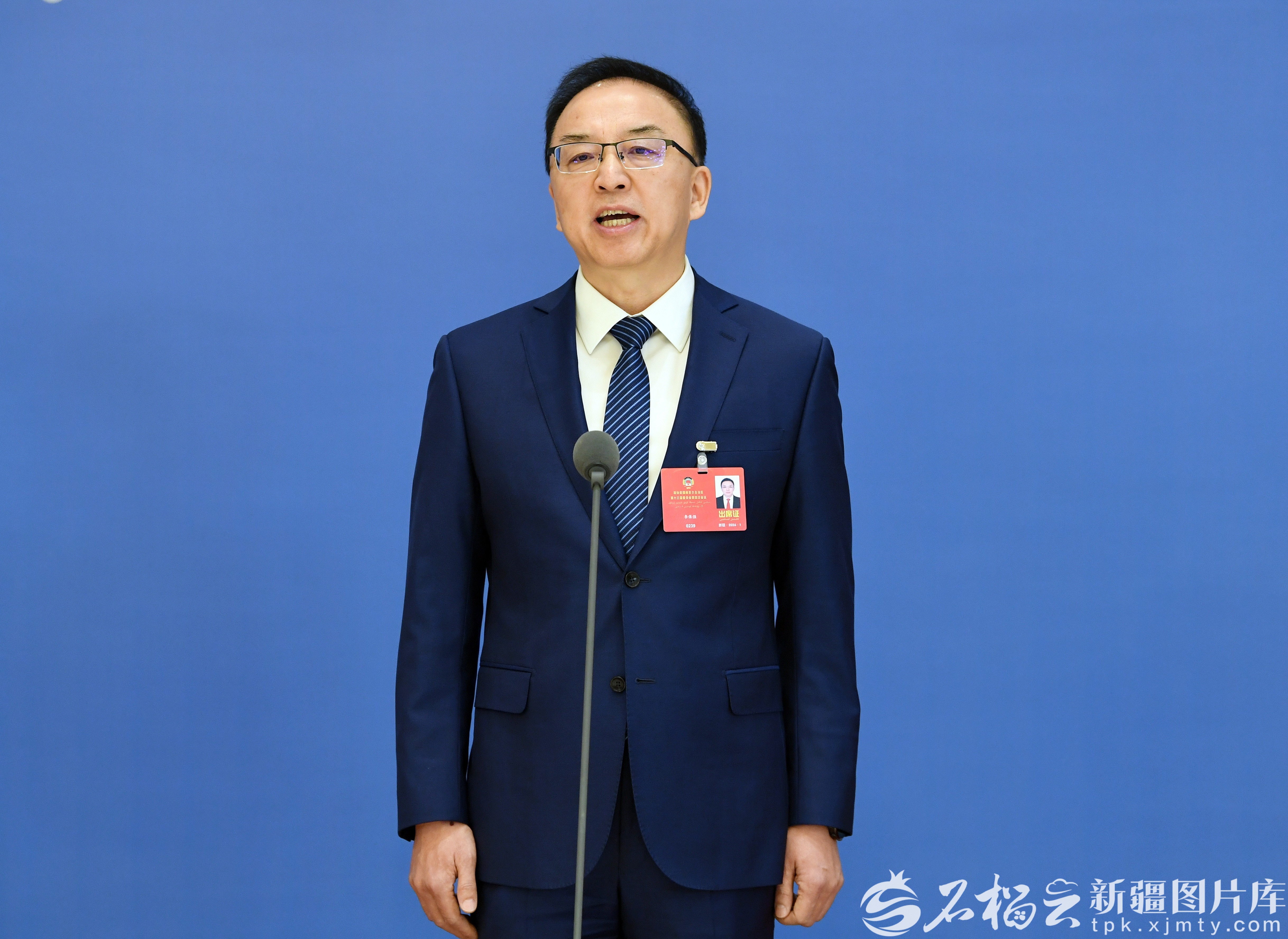 李保强委员答记者问。石榴云/新疆日报记者约提克尔·尼加提摄