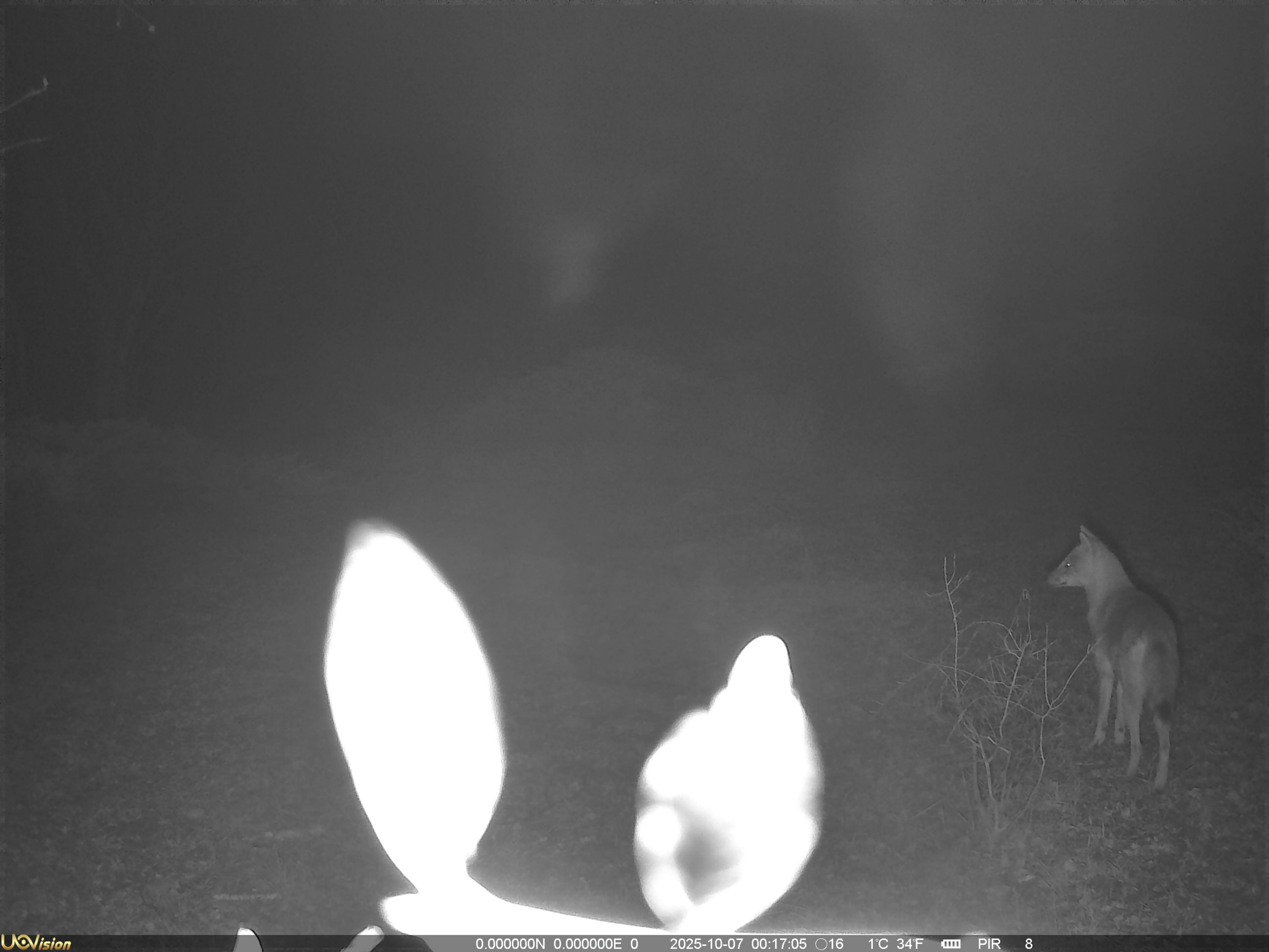 红外相机捕捉到亚洲胡狼夜间活动影像。(图/自治区林业科学院提供)